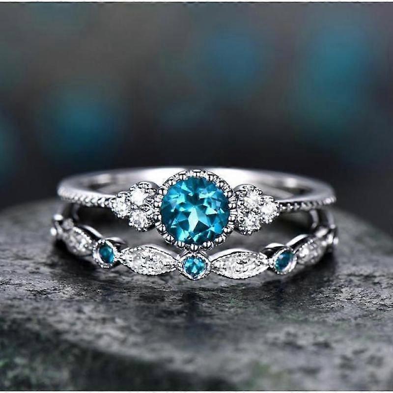 Luxora 2pcs/set Luxury Rings New Green Blue Stone Crystal Rings For Women Silver Color Wedding Fashion Jewelry-Lake Blue