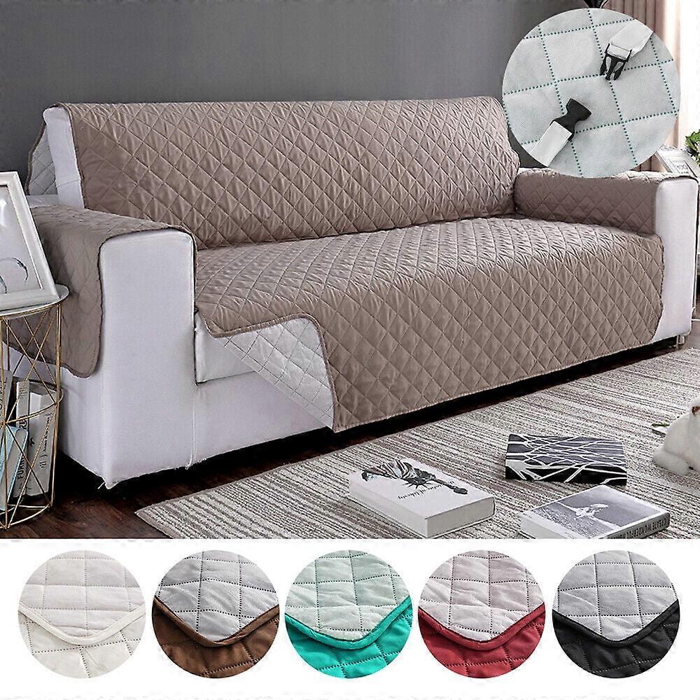 Reversible Quilted Sofa Cover, Water Resistant & Washable Couch Protector with Elastic Straps for Kids, Pets (Beige, 3-Seater)