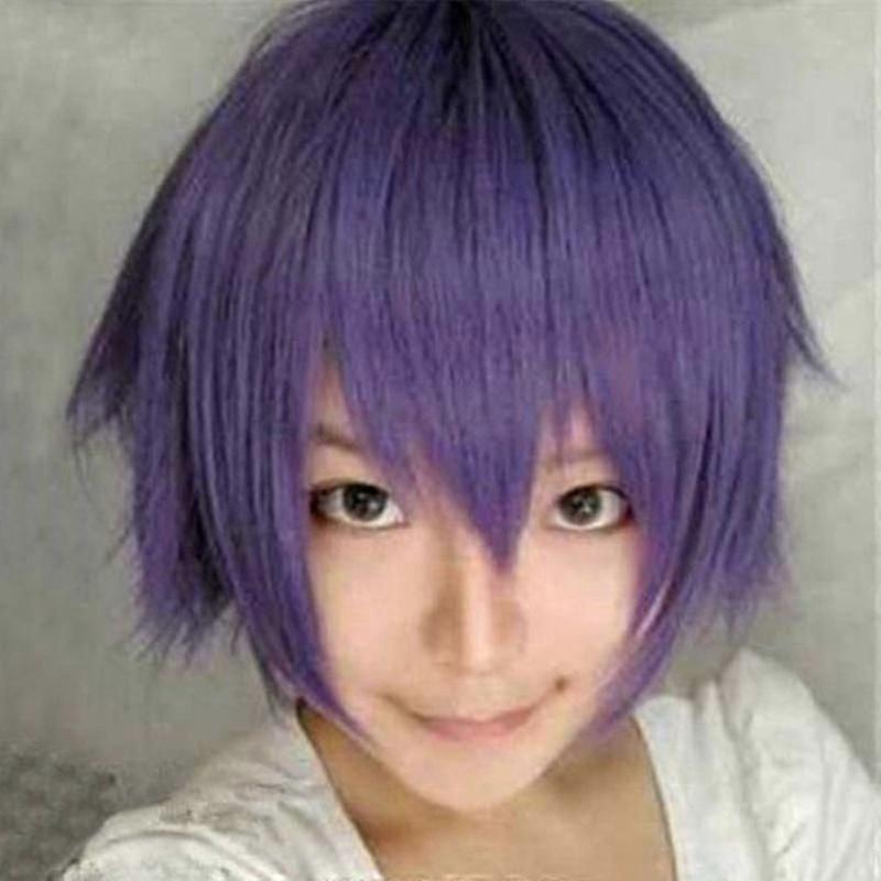 Unisex Mens Boys Anime Short Wig Cosplay Party Straight Hair Full Wigs-Purplez
