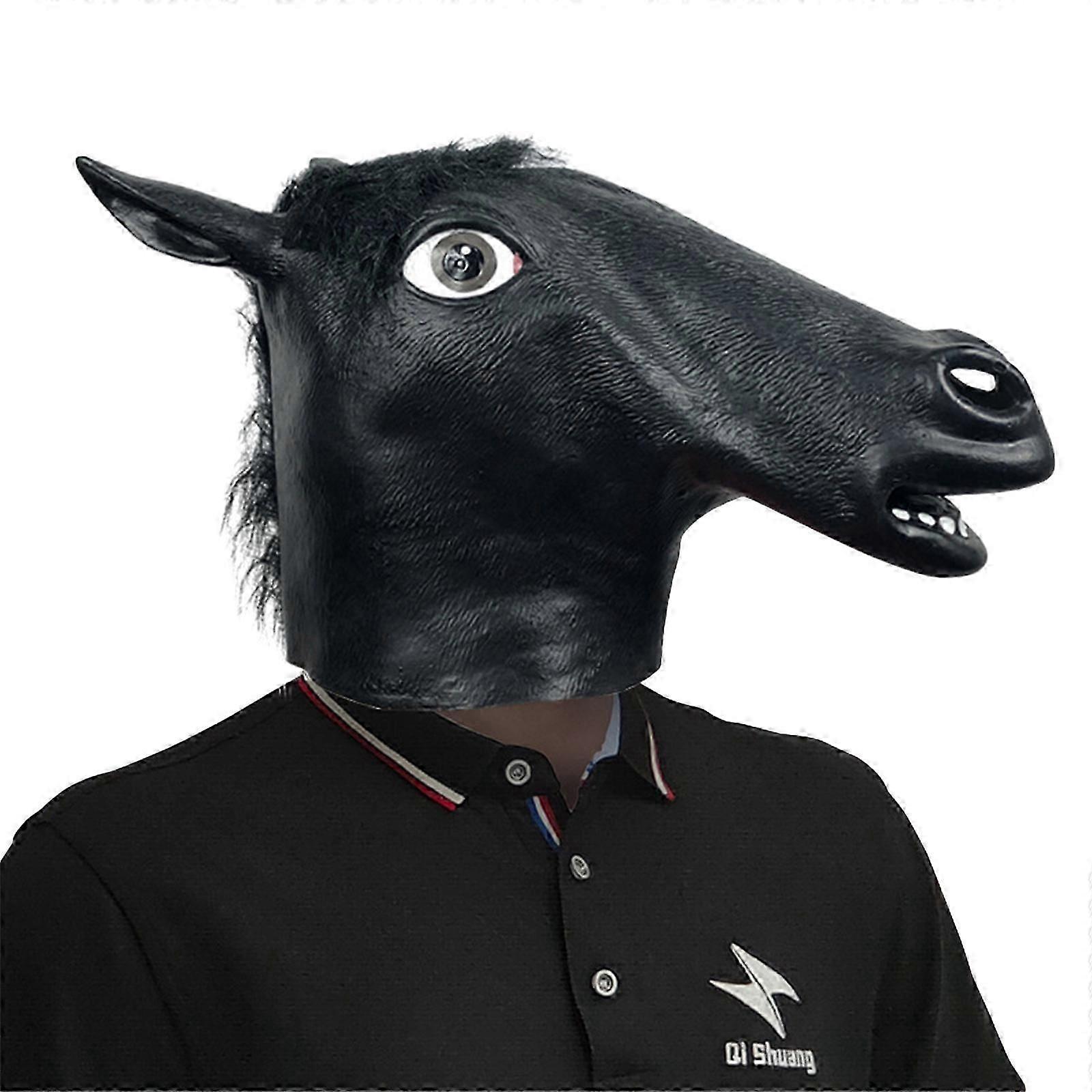 Funny Horse Mask Halloween Party Dress Up Prop, Adults Horse Masquerade Horse Head Latex Mask for Men Masquerade Party brownz