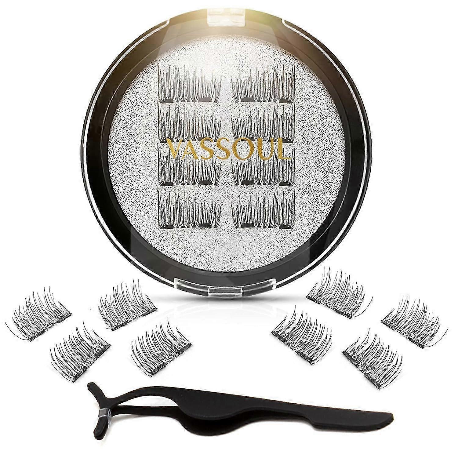 Double Magnetic Eyelashes, Half Eyelashes, 0.2mm Ultra-Thin Magnets, Lightweight Reusable 3D Eyelashes with Applicator, Blackp