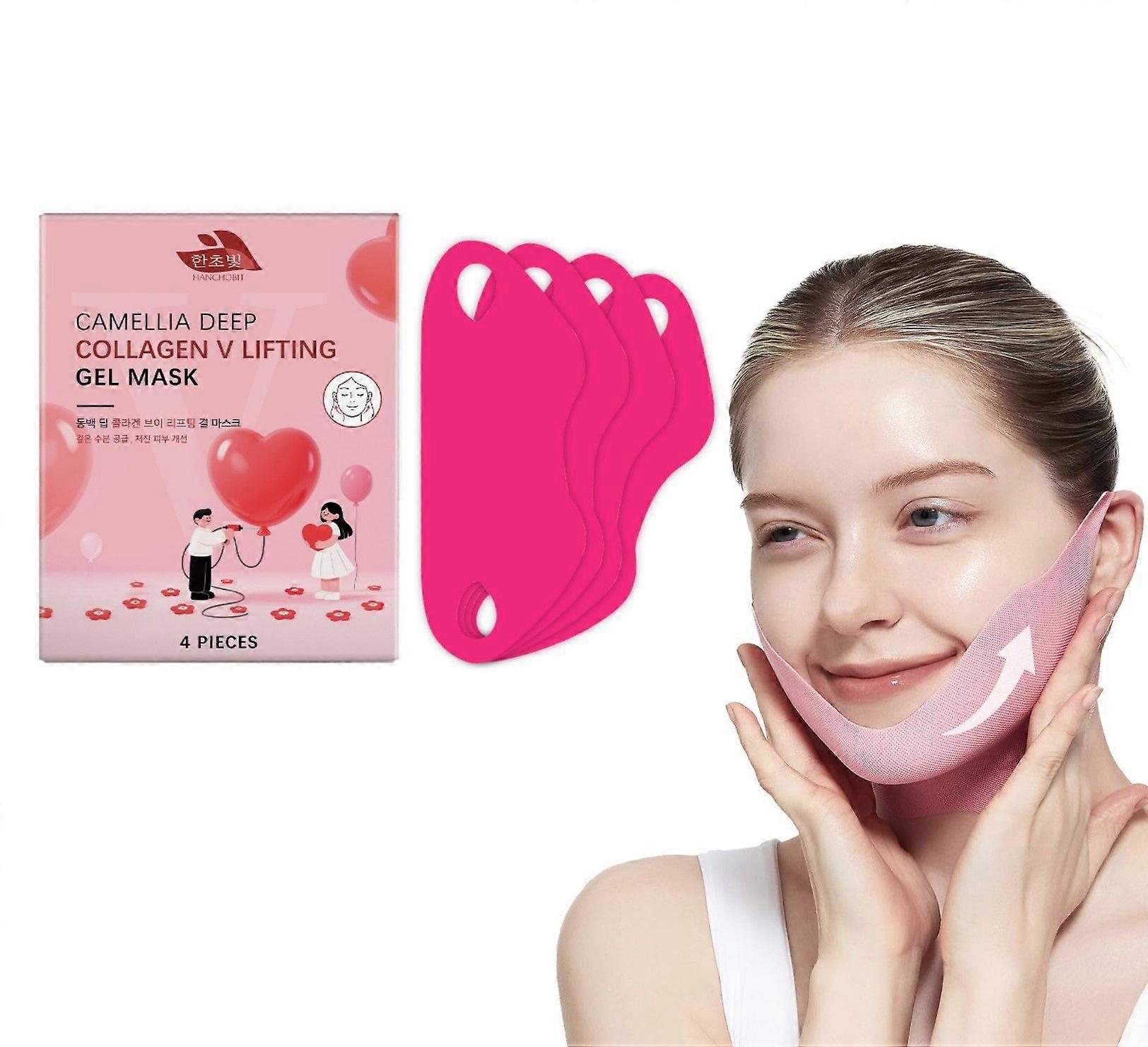 Camellia Deep Collagen V Lifting Gel Mask 4PCS | Double-chin Mask, Face Toning Belt, Collagen V-line, Improves Sagging Skin, Lifting & Firming