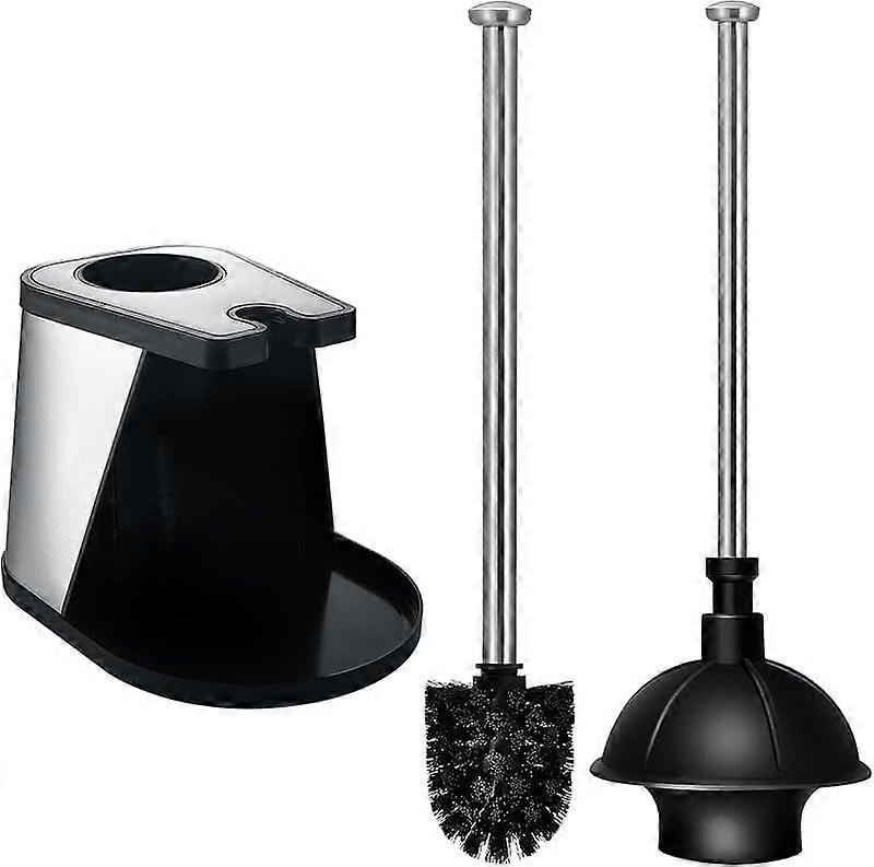 Modern Deluxe Freestanding Toilet Brush and Plunger Combo (Stainless Steel, Brush and Plunger Combo Set 4.5” x 9.75” x 18.5")