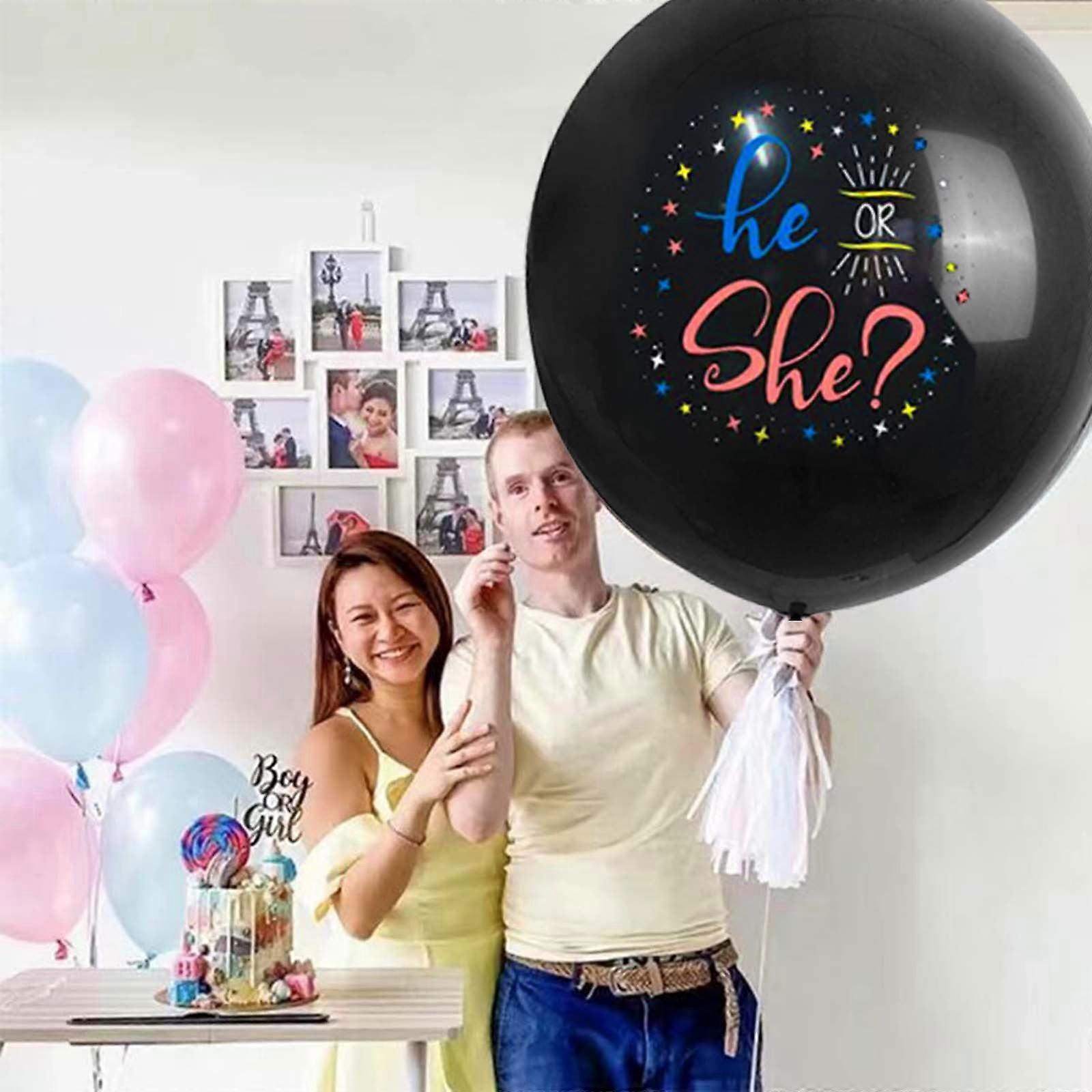 Hglyxoae Gender Reveal Balloon, Boy or Girl Balloon, 2pcs 36" Baby Gender Reveal Balloons with Heart Confetti, Baby Shower Party Supplies