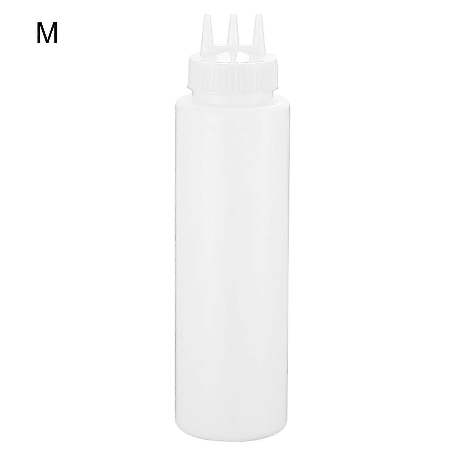 Farfi Refillable Squeeze Bottle Food Grade 3 Hole Large Capacity Condiment Bottles for Kitchen (White,M)