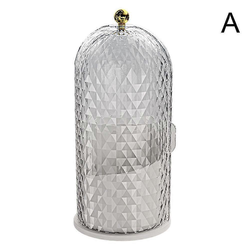 Patterned Birdcage Makeup Brush Holder with Sliding Lid 360 Rotation Dustproof Storage for Bathroom Vanity