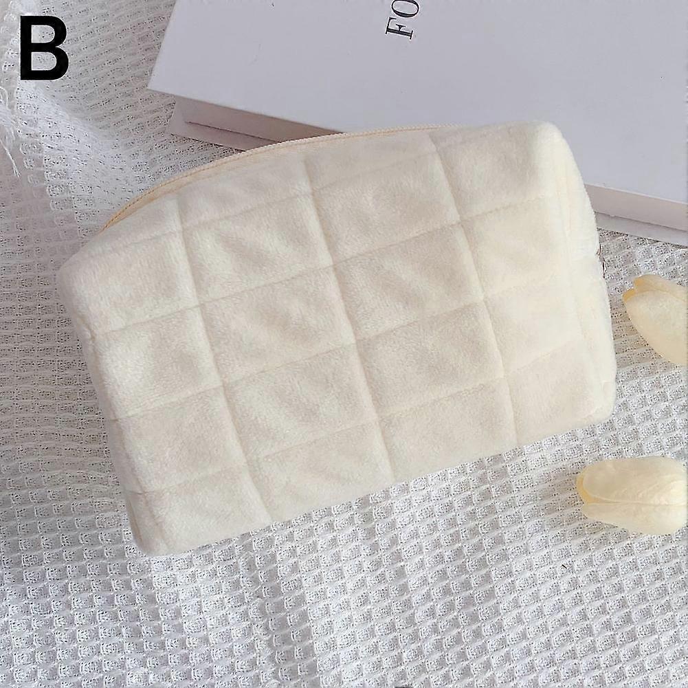 Plaid Makeup Bag Large Capacity Velvet Cosmetic Organizer Travel Toiletry Storage Pouch