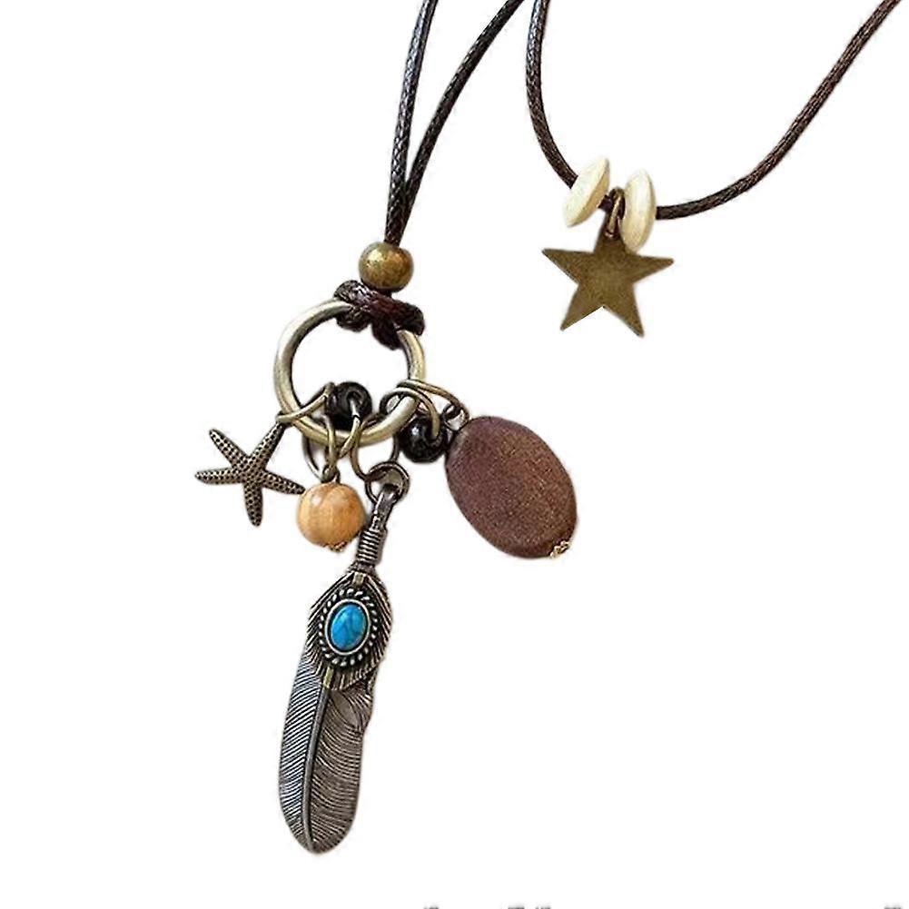 Bohemian Layered Alloy Necklace 60cm Retro Brown Ethnic Design for Women Luxury Fashion Jewelry Gift