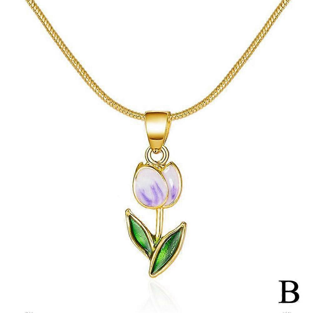 Tulip Flower Necklace Blue Pink Alloy Jewelry Unique Eye-Catching Gift For Women For Mom For Valentine