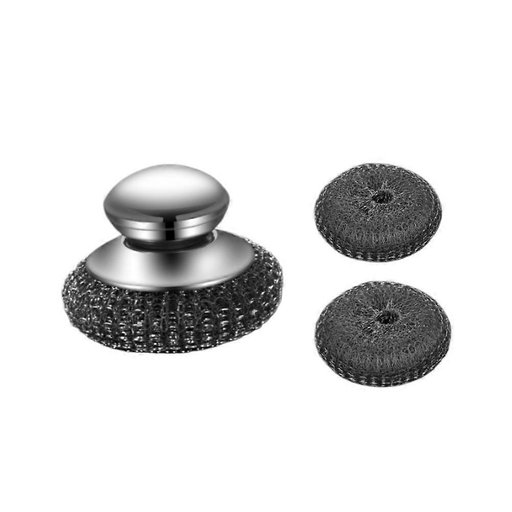 Heavy Duty Stainless Steel Scouring Pad 3 Pack Reusable Scrubbing Wool For Burnt Pots Pans Oven Tiles Grout Deep Cleaning With Long Non Slip Handle