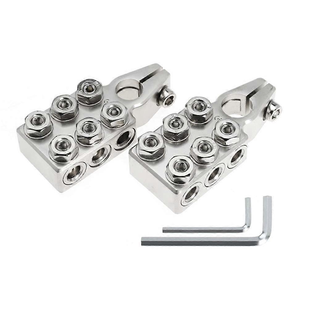 Specification: Item Type: Battery Terminal Connector Material: Zinc Alloy Battery Voltage: 48V, 36V, 24V, 12V, 6V Battery Type: Lead Acid Battery(AGM, GEL, WET, MF, CA/CA) Tapered Post Type: SAE/ EN/ DIN (but not including JIS pencil holder) Other Standards of Cables Can Be Fixed: 0 (1/0) AWG, 2 AWG, 4 AWG, 6 AWG, 8 AWG, 10 AWG, etc Fitment: Fit for car, RV, truck, houseboat, motorcycle, forklift, crane. Description 1. High Quality Material: Battery terminal clamp is made of high quality zinc alloy material, high strength, rustproof and sturdy. 2. 12 Way Connectors: 12 way battery terminals connector can support multiple wires at the same time, suitable for installing audio and other equipment. 3. Excellent Performance: Professional manufacturing, exquisite workmanship, high accuracy, high toughness, not easy to deform, have a long service time. 4. Application: Tapered post type is SAE, EN, DIN, can fixed cable of 0 (1/0) AWG, 2 AWG, 4 AWG, 6 AWG, 8 AWG, 10 AWG, etc. 5. Wide Application: Lead acid battery post connector fits for car, RV, truck, houseboat, motorcycle, forklift, crane, etc. Package List: 2 x Battery Terminal Connector