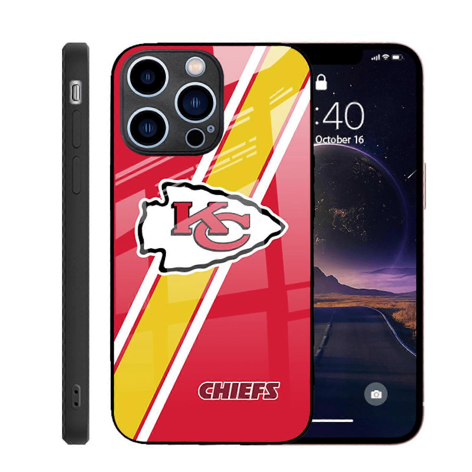 Acrylic Tempered Glass Phone Case for Kansas-City-Chiefs, compatible with iPhone, Camera Protection, Anti-Fingerprint, Shockproof, Fit for Men and