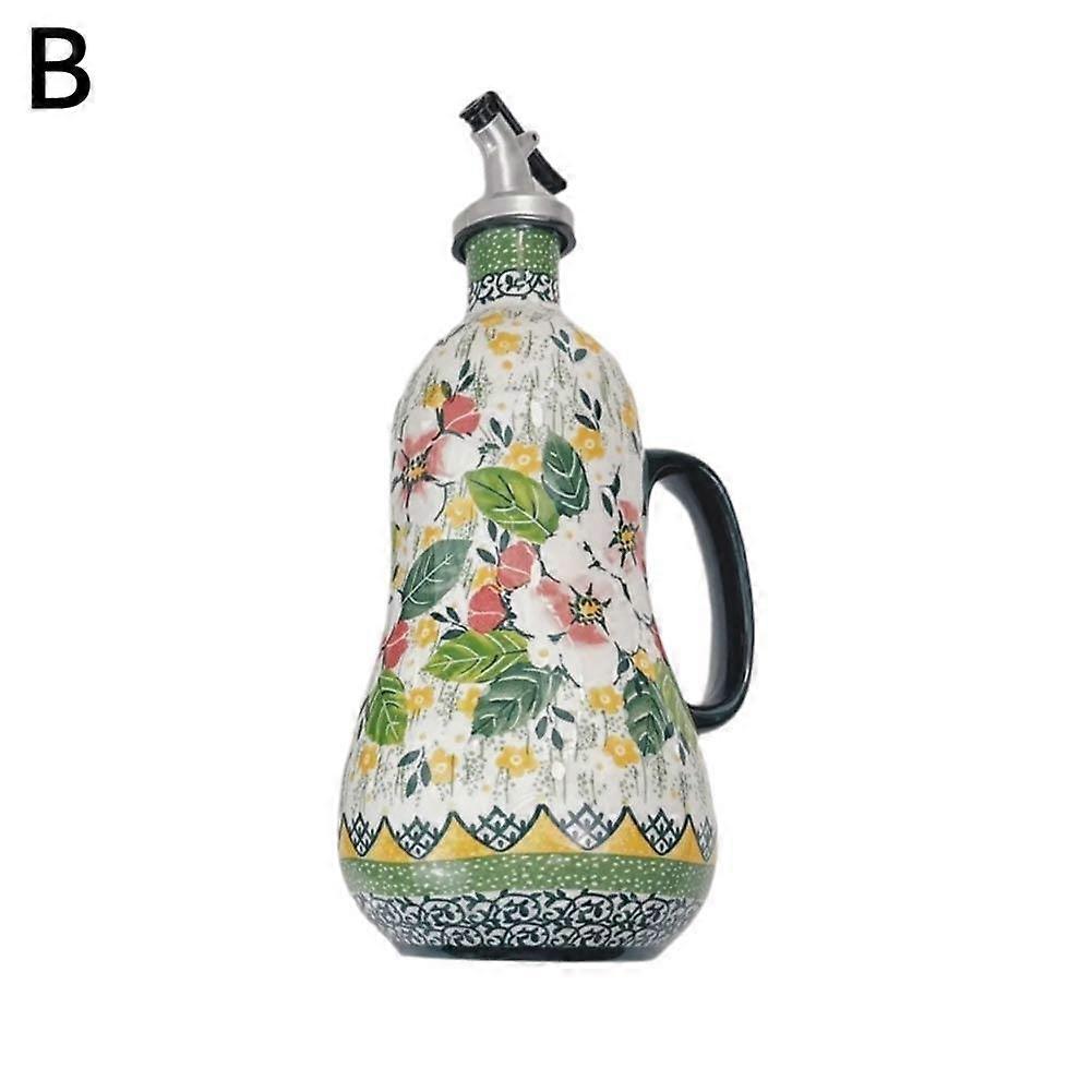 Name: Oil pot Capacity: 700ml DESCRIPTION LARGE CAPACITY DISPENSING BOTTLE - This olive oil and vinegar dispenser bottle holds up to 700ml, the wide mouth, elegant design and drip-proof spout make using and refilling condiment bottles a breeze, perfect for everyday use in any kitchen! PREMIUM QUALITY MATERIALS - Each ceramic olive oil dispenser is made of smooth ceramic, handcrafted and hand-painted into flavour bottles, which protects the olive oil from UV rays and keeps it fresh. ELEGANT DECOR - The kitchen olive oil holder and dispenser features an elegant, timeless design with vibrant colours to complement any kitchen, living room, dining table, home, cafe and more! MULTIFUNCTIONAL APPLICATIONS - Our olive oil dispenser bottles are not only perfect for storing and dispensing olive oil, but can also be used with any other oils, coffee syrups, vinegars, sauces, and more to make it easier to drizzle on food. AS A GIFT - Whether you're looking for a housewarming gift or a Valentine's Day gift, our ceramic olive oil dispenser bottles will fit the bill. Makes a great Mother's Day, birthday, holiday, Christmas, housewarming and hostess gift.