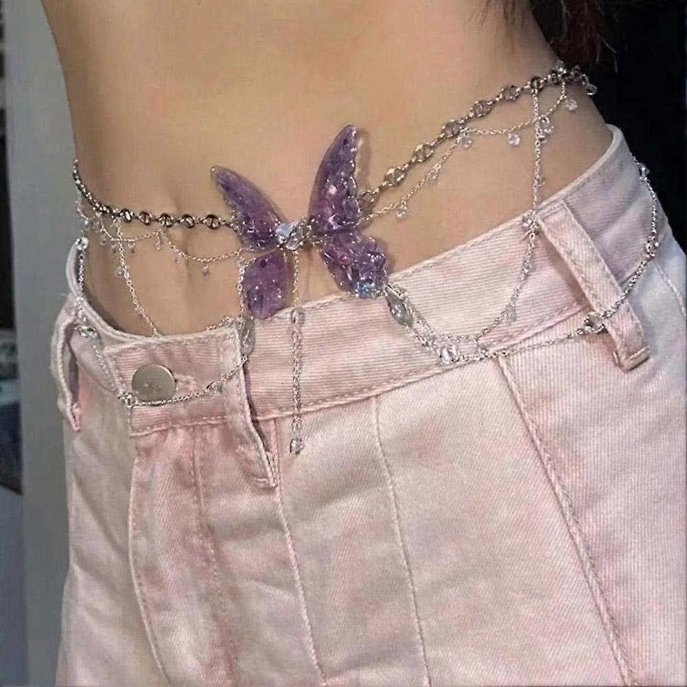 Pink Alloy Waist Chain 36 Inch Butterfly Tassel Body Jewelry Multi Use Fashion Accessory for Women