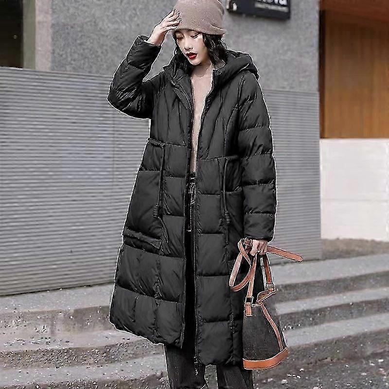 Women's Down Jacket Winter Puffer Coats Windproof Thick Warm Waist Hooded Parka Simple Retro Large Pockets Long Jacket for Womenwz