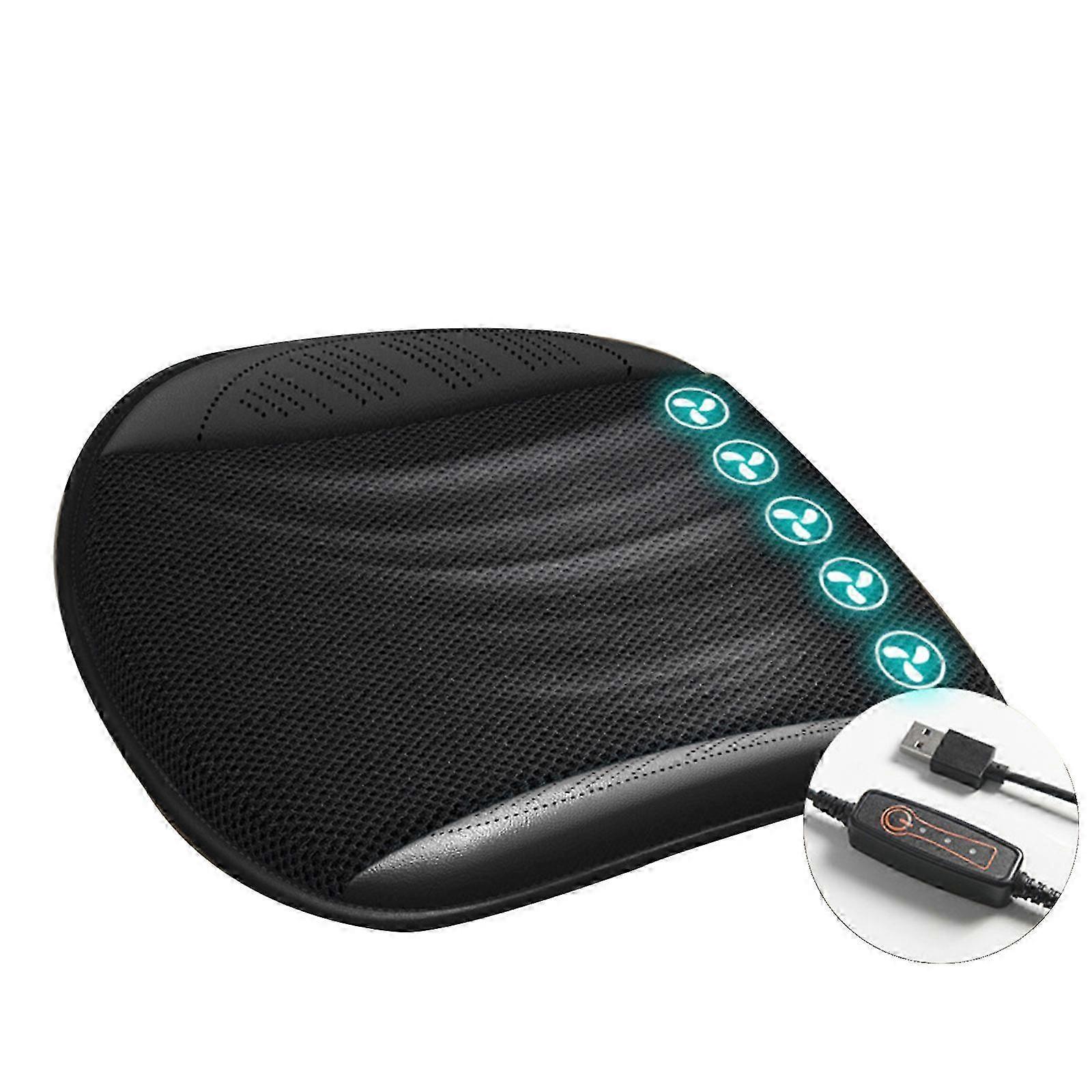 New Universal Portable Air Cooling Cushion Fan Car Seat, Cooling Pad Car Seat Office Home Cooling Pad-5 fan-HL-Mysterious Black