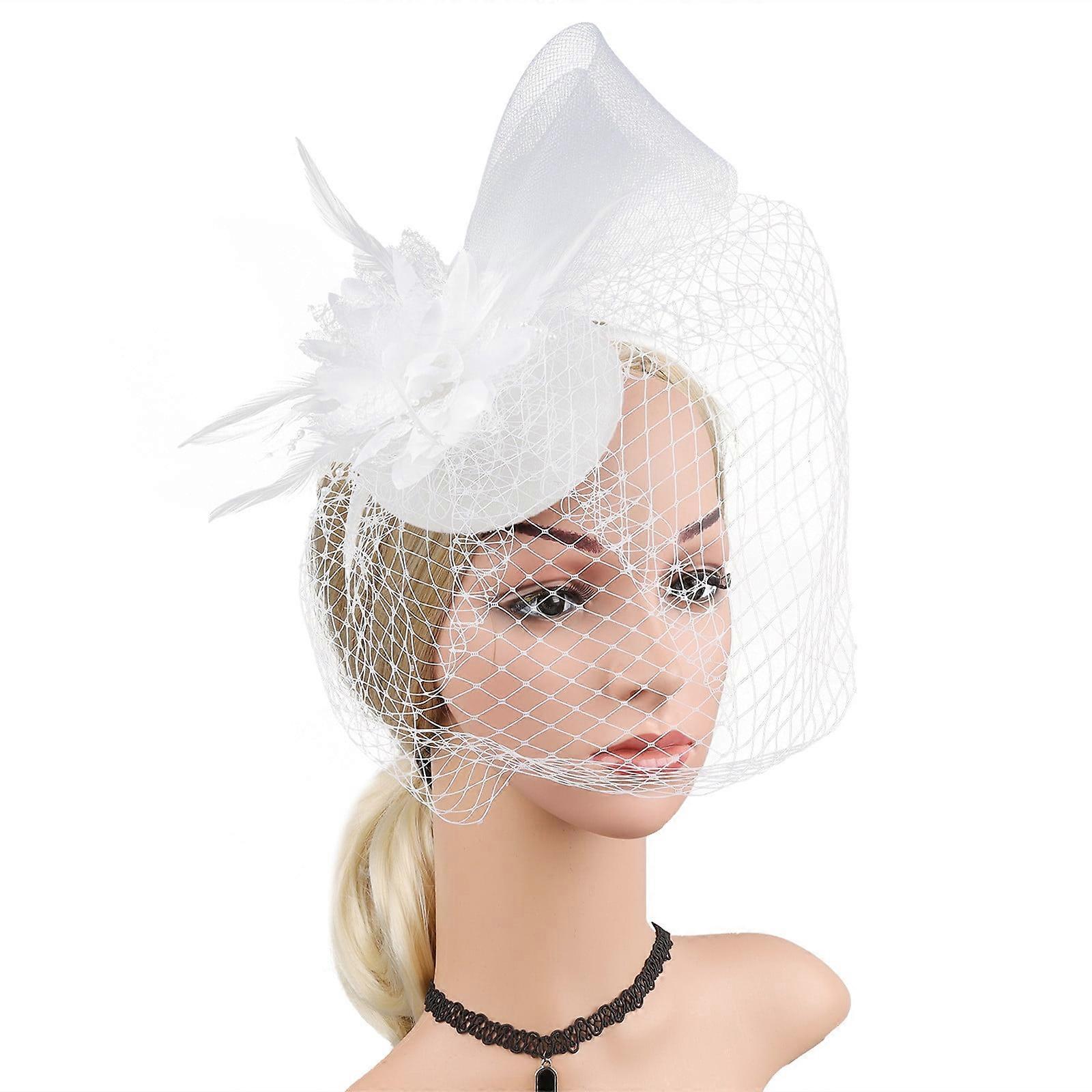 Hamky Hair Accessories,Fascinators Hats,Women's European Vintage Vening Banquet Feather Flower Hair Ornament Hat,Hair Tools,Headbands White