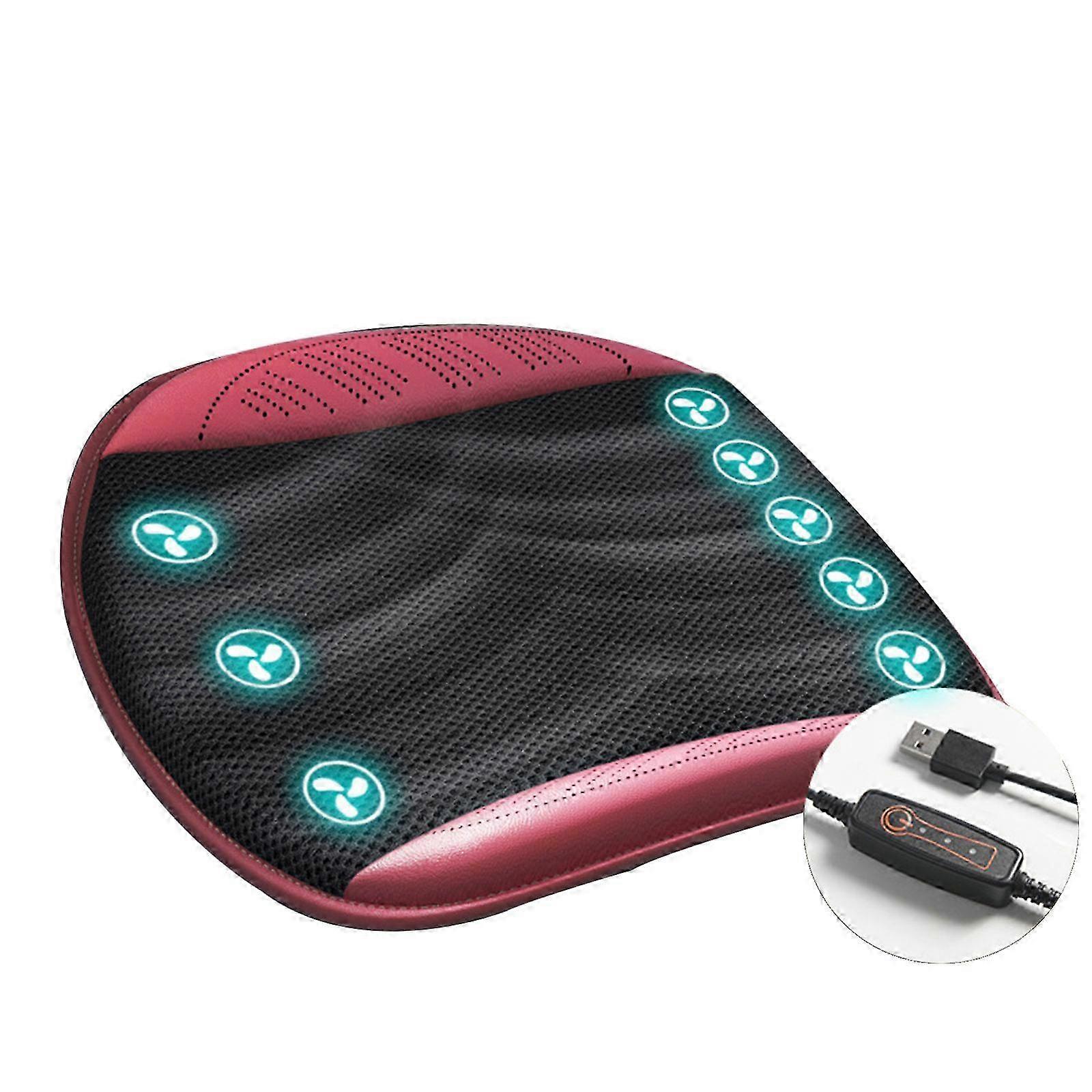 New Universal Portable Air Cooling Cushion Fan Car Seat, Cooling Pad Car Seat Office Home Cooling Pad-8 fan-HL-Martha Red
