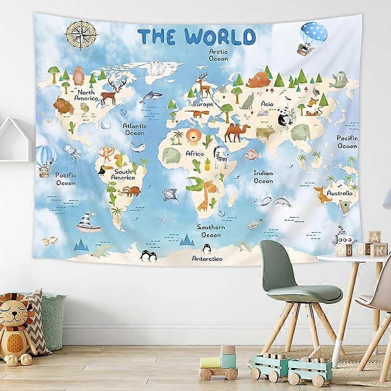 Kids Map Tapestry, Compatible with World Cartoon Animal Design, Cute Educational Geography Learning Tool, Colorful Continents Wildlife Wall Hanging