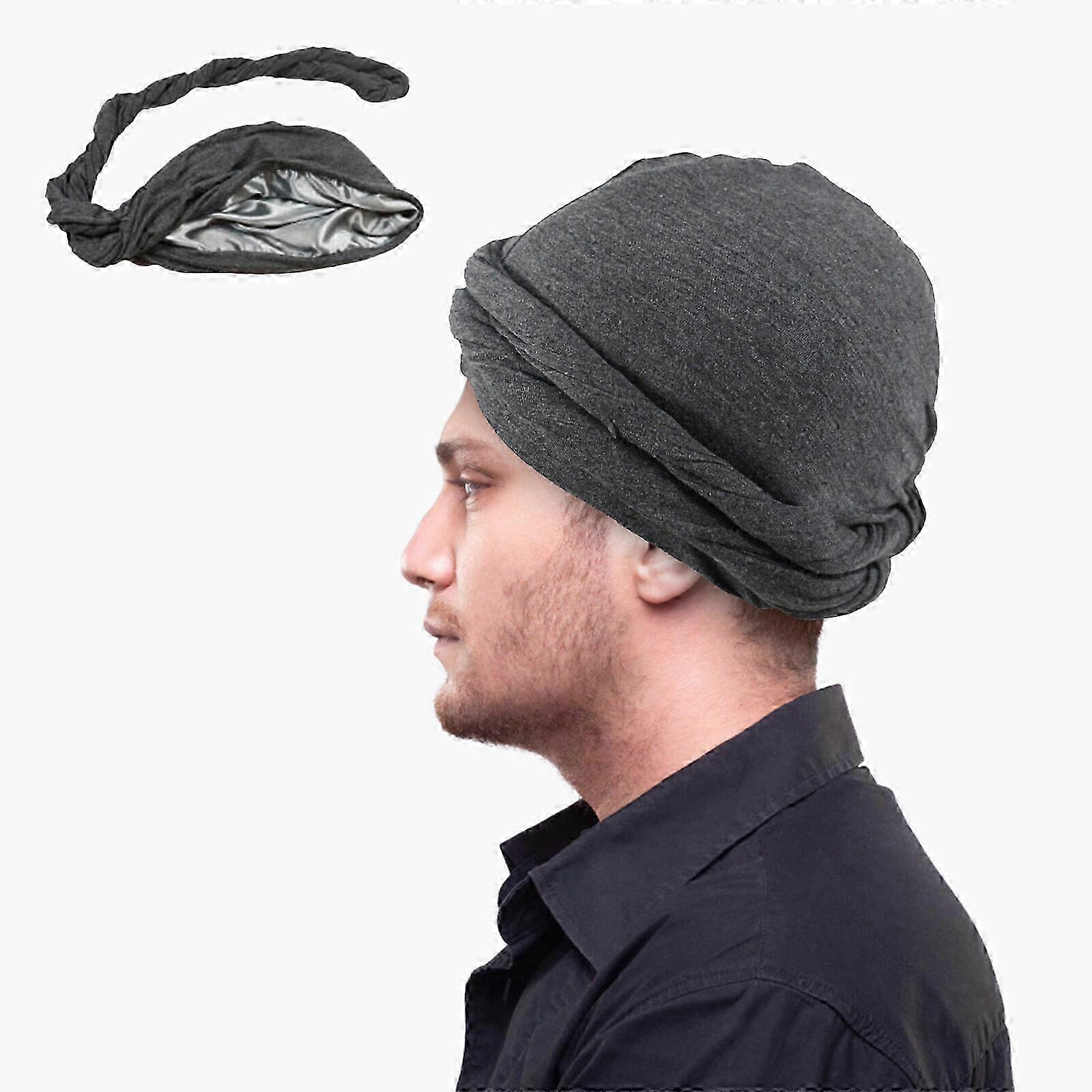 2023 New Turban for Men Halo Satin Lined Head Wraps Stretch Durags with Long Twisted Straps Cool Cap-60cm-62cm-dark grey