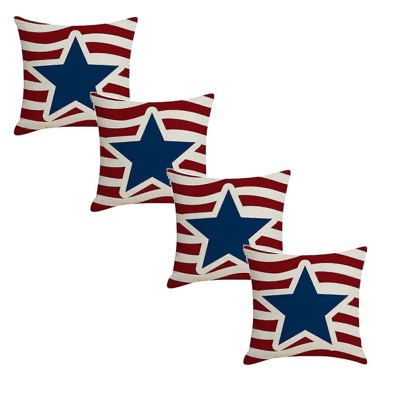 New Independence Day Linen Printed Pillow Cover With Red Wave Letter Sofa Pillow Holiday Party Decoration Pillow *4PCS