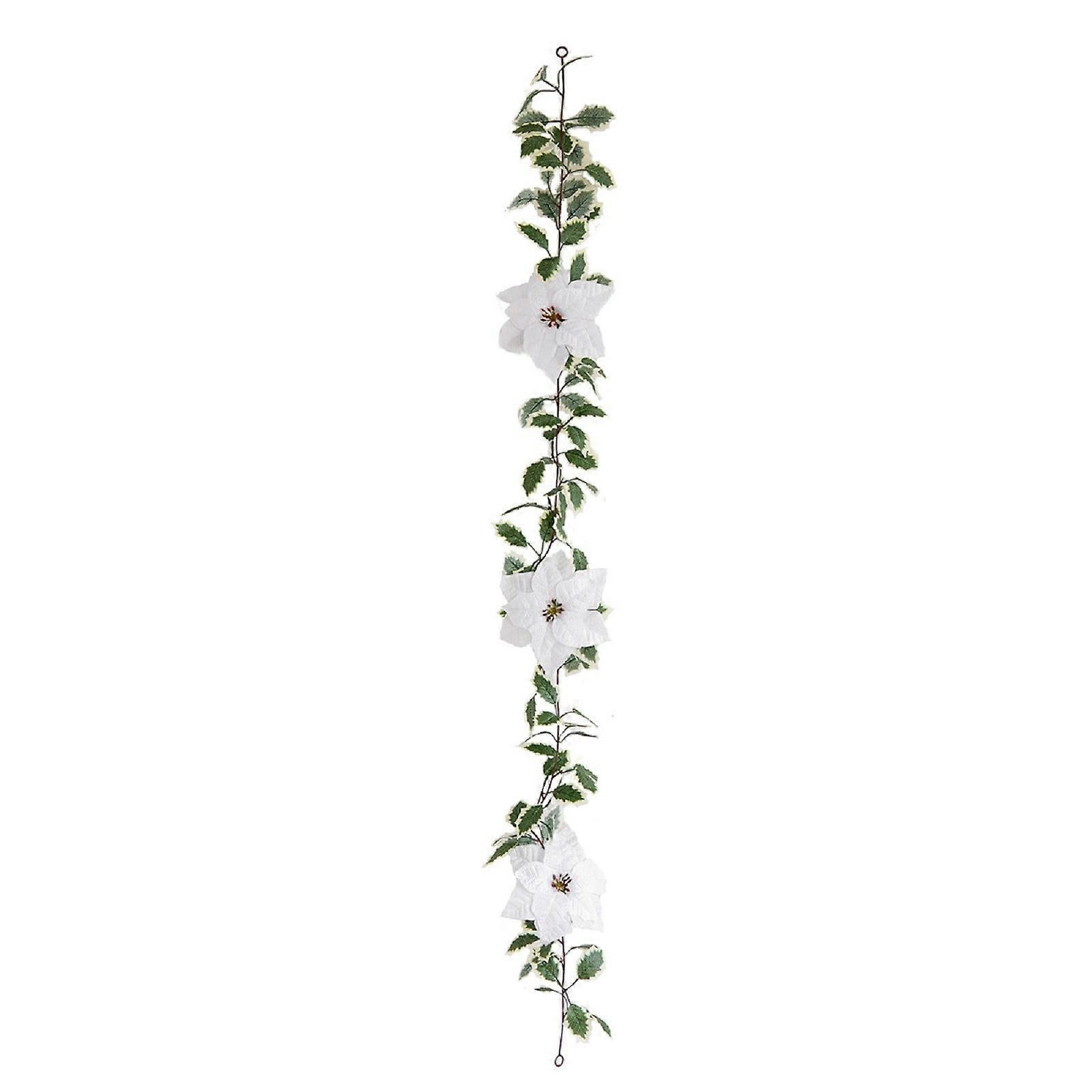 Clearance! 62.9" White Indoor Christmas Garland, Poinsettia Rattan Decoration for Wall, Fireplace, Compatible with Holiday Home Decor
