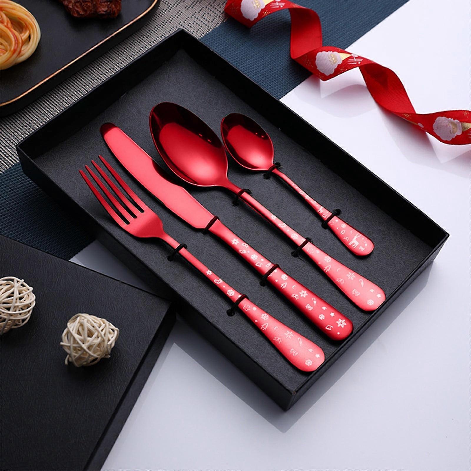 Harliver Stainless Steel Flatware Set 4-Piece, Red, Compatible with Christmas Dinner, Mirror Polished, Dishwasher Safe