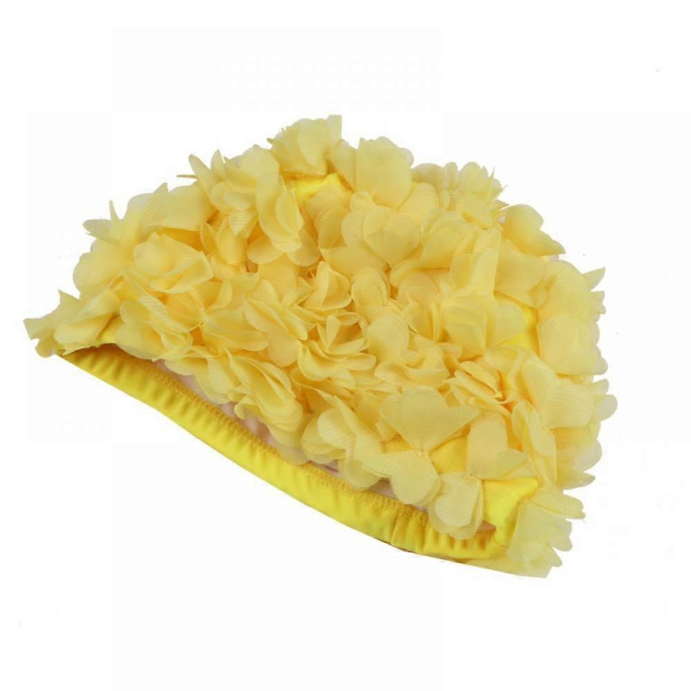 Women Swimming Cap Floral Elastic Breathable Padding Bathing Hat for Long Hair, Yellow
