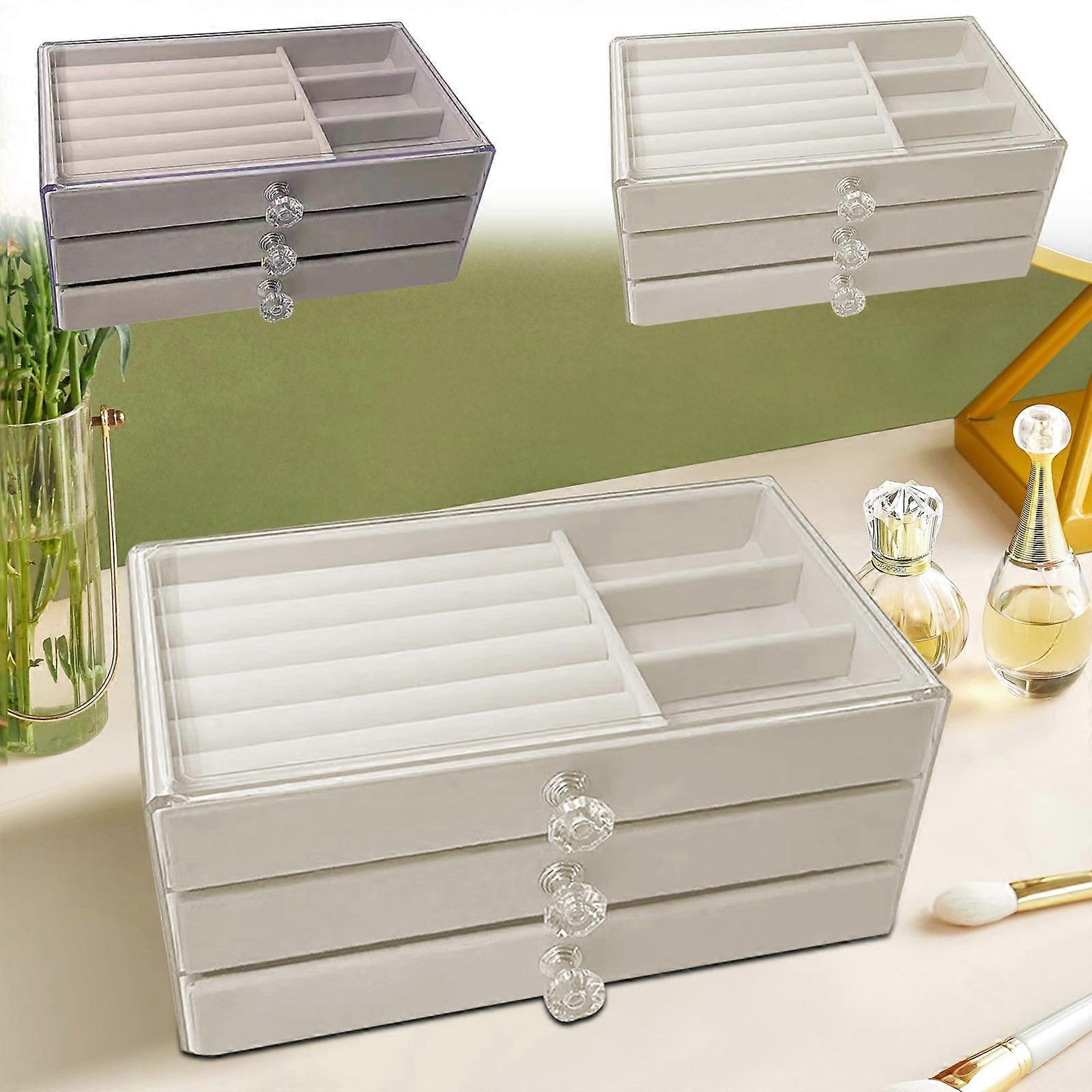 Akmoler 3-Layer Jewelry Box, Flannel Drawer Organizer for Earrings, Rings, Necklaces, Polyester, Beige, 2 Colors