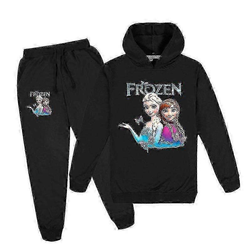 Kids Elsa/anna Long Sleeve Hoodie Pants Suit Girls Tracksuit Sportswear Outfit Black Y