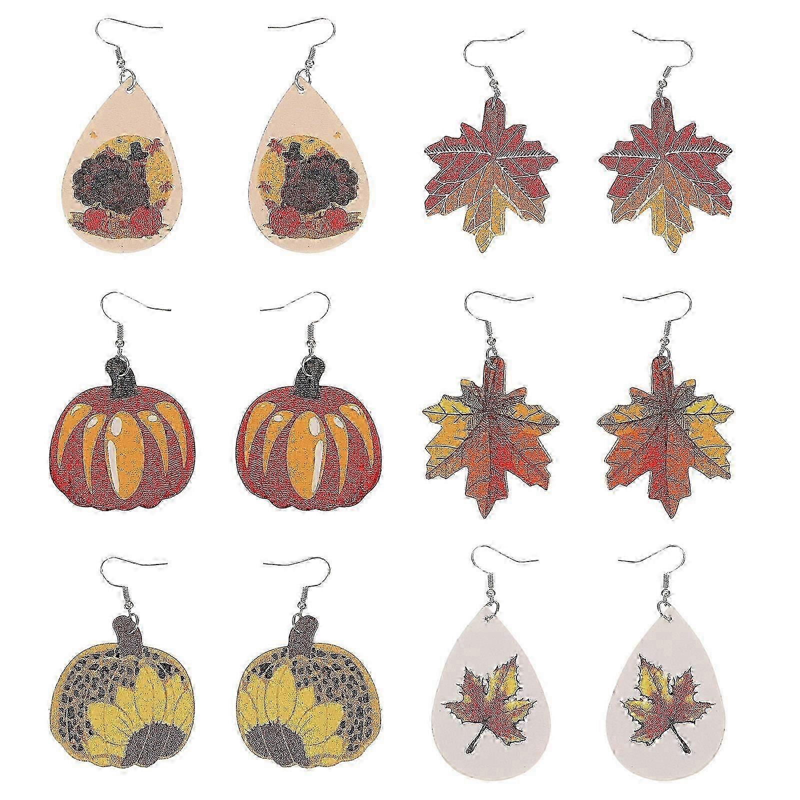Thanksgiving Fall Earring Maple Leaf Ear Drop Daily Wear Assorted .7x4.5cm Festival Decoration 6 Pairs .