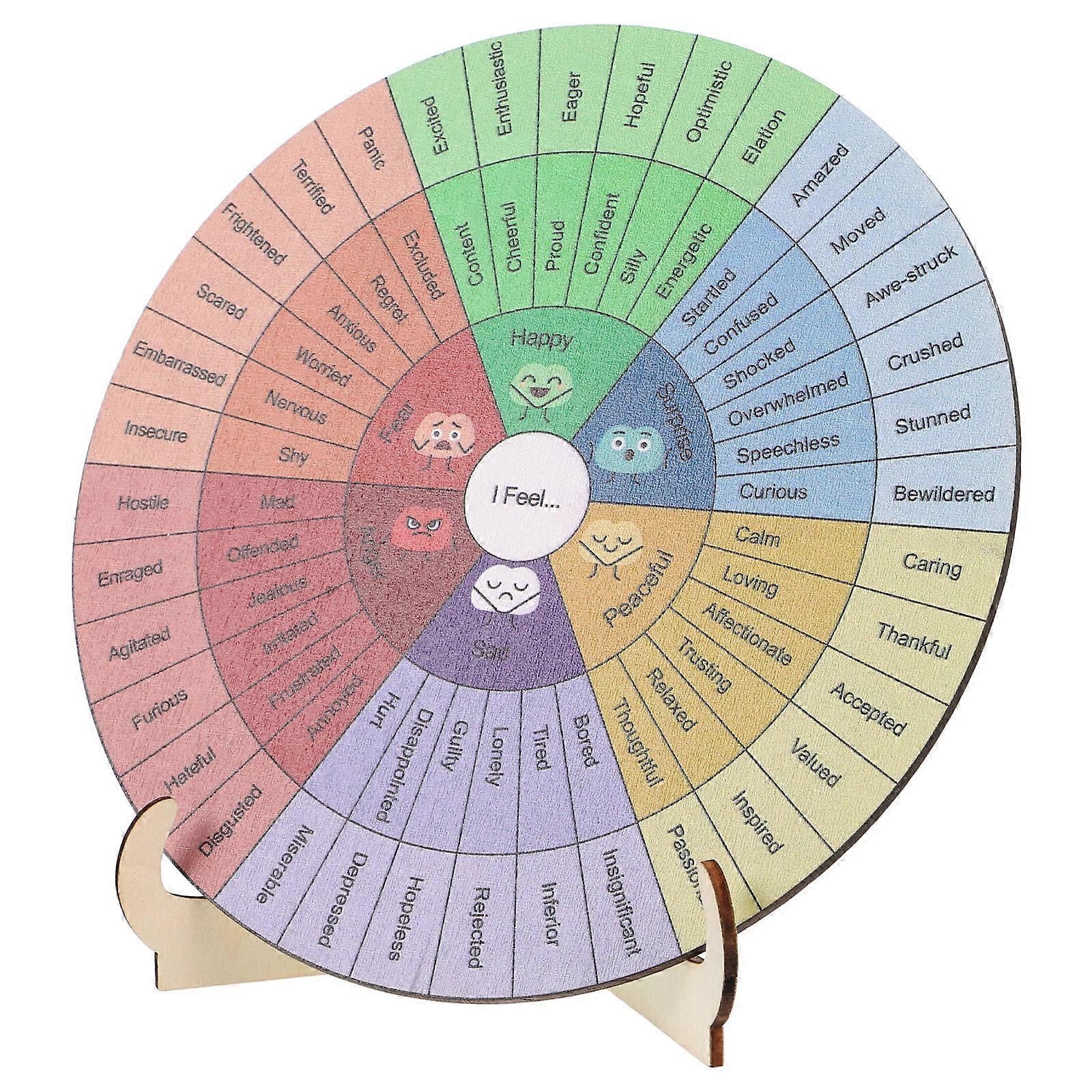Feelings Chart Wheel for Therapy 2Pcs Wooden Double Sided Desktop Ornament