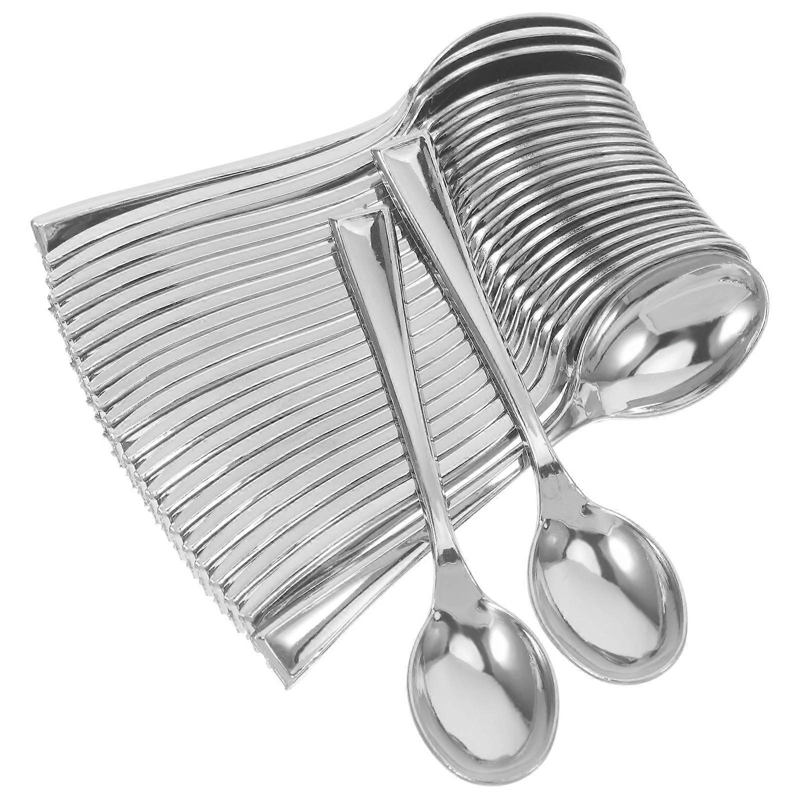 Add a touch of elegance to your next event with these gold-colored dessert . Ideal for serving small portions of pudding, mousse, or other desserts, these are both stylish and practical. Their metallic appearance adds a luxurious feel to any table setting, while their nature makes post-event cleanup a breeze. Features - Color: Silver -Material: -Size:10.00X2.20X0.20cm/3.93X0.86X0.08in - and : these gold mini are designed for onetime use, making them a option for serving at any event or gathering. -Luxurious metallike design: with a design that mimics real metal, these offer a luxurious and elegant touch to your dining experience. -Visually appealing gold finish: the gold finish on these adds a touch of elegance and sophistication, making your desserts look even more appealing. -Ideal for various foods: great for serving desserts, jams, and other small items, these are versatile and suitable for many culinary uses. -Strong and durable: made from durable materials, these are sturdy and durable, ensuring they won't bend or break easily during use. Package list: 50pcs x
