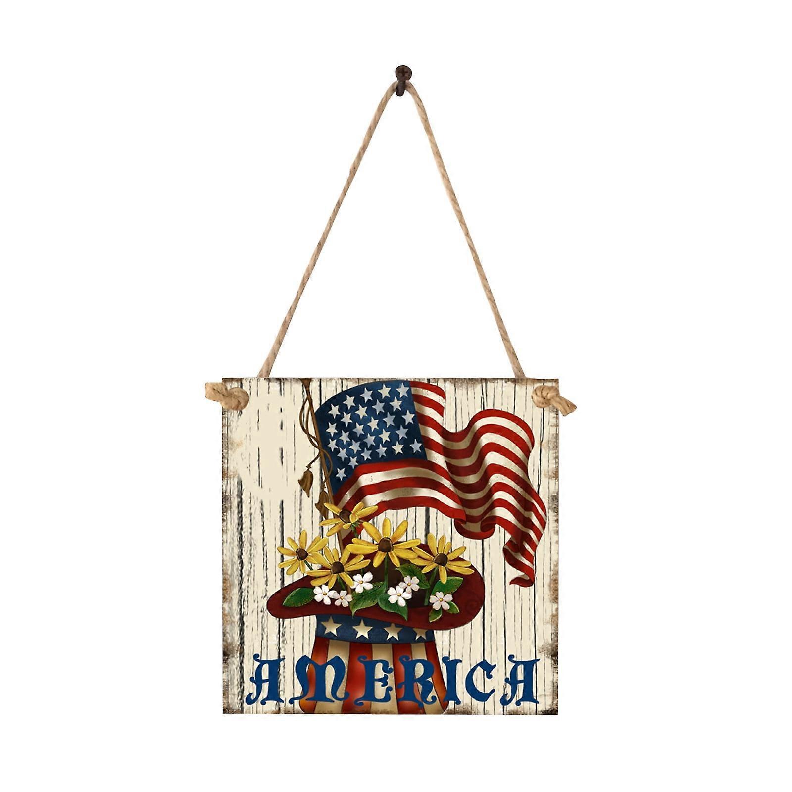 Ganenn 1PC God Bless America 4th of July Wooden Sign, Patriotic Independence Day Wall Decor (5.9x5.9in)