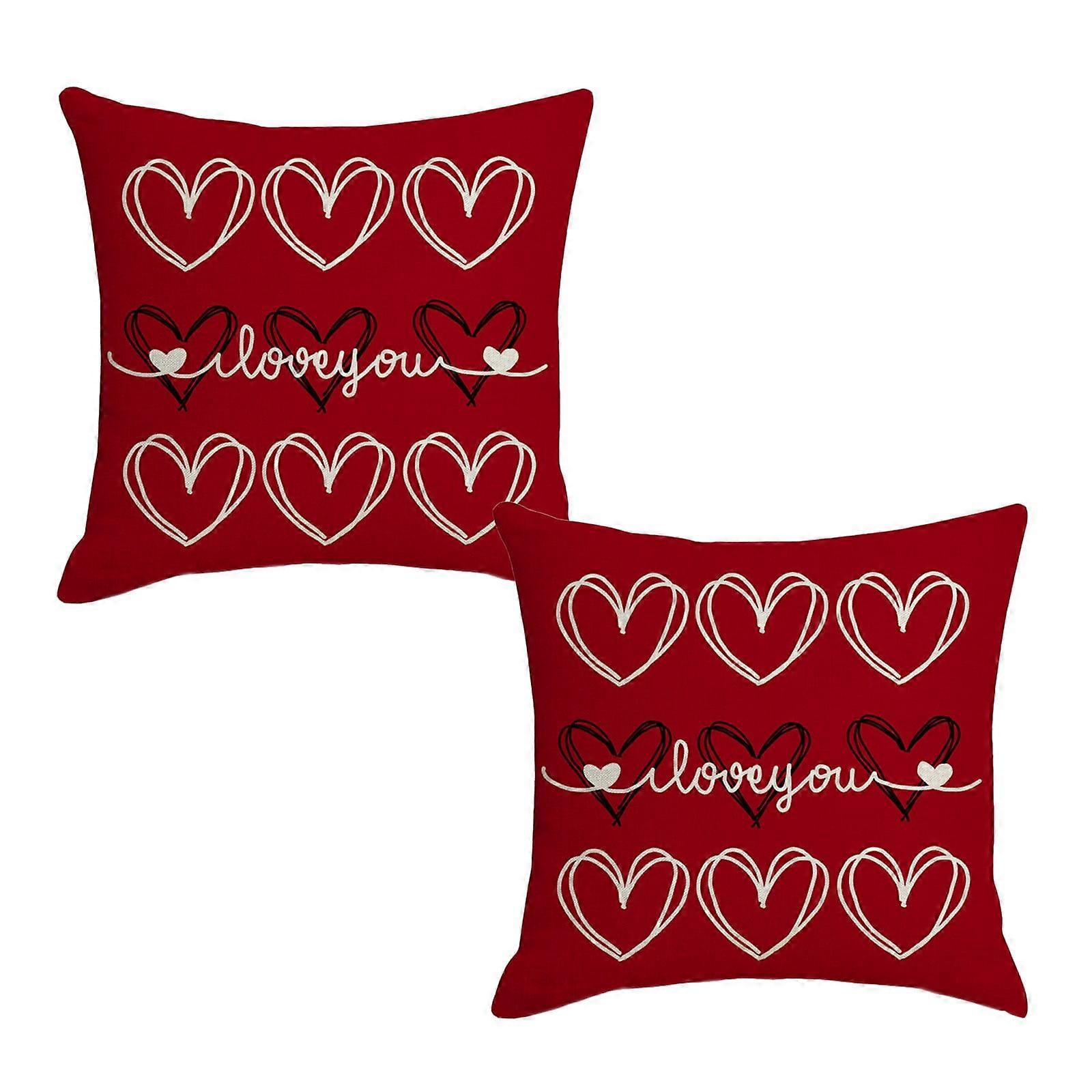 Valentines Day Pillow Covers Set of 2, 18x18 inch Red White Love Hearts, Romantic Double Sided Cushion Covers for Sofa, Couch, Bedding, Wedding Decor