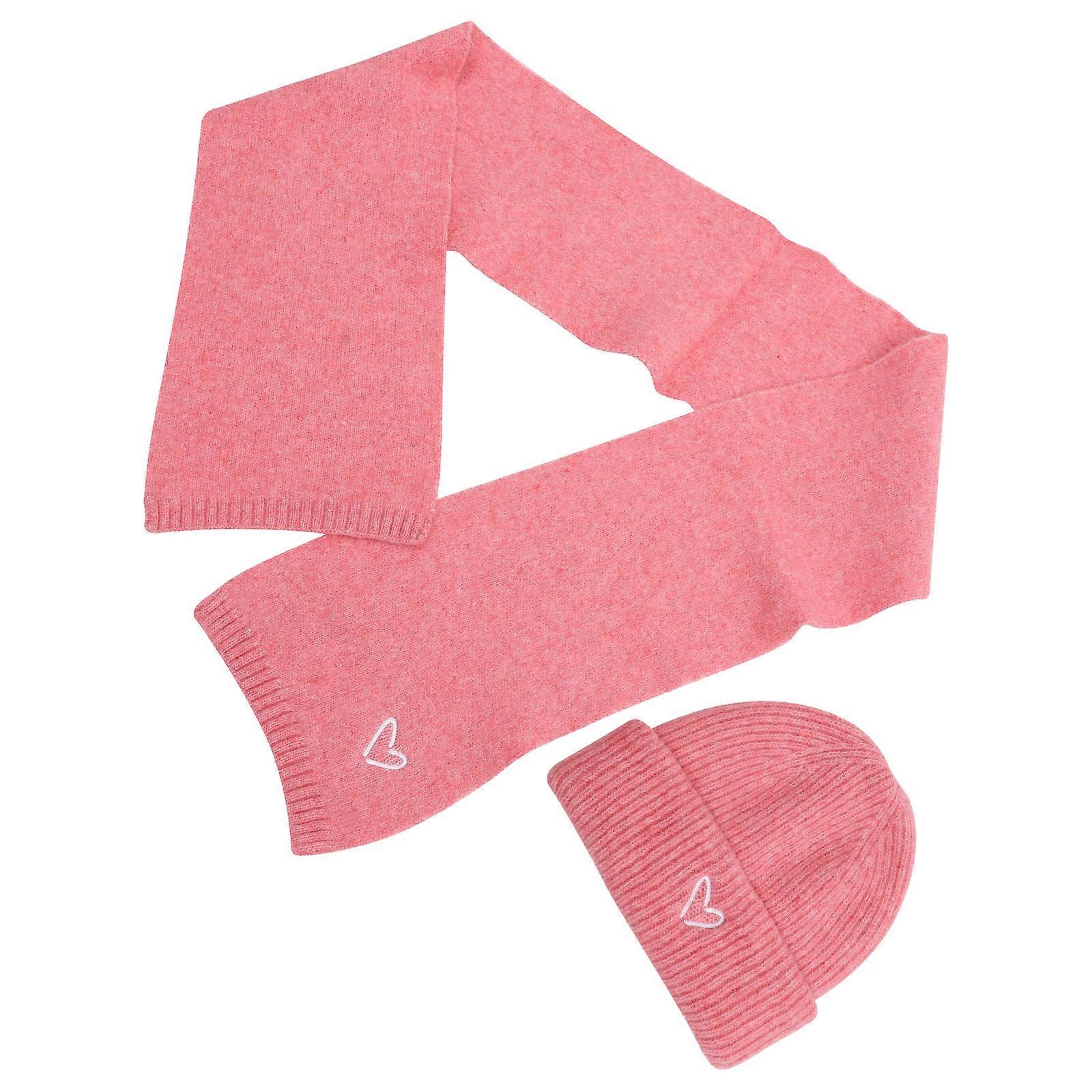 Pink Embroidered Heart Warm Hat and Scarf Set for Little Girl 1Set