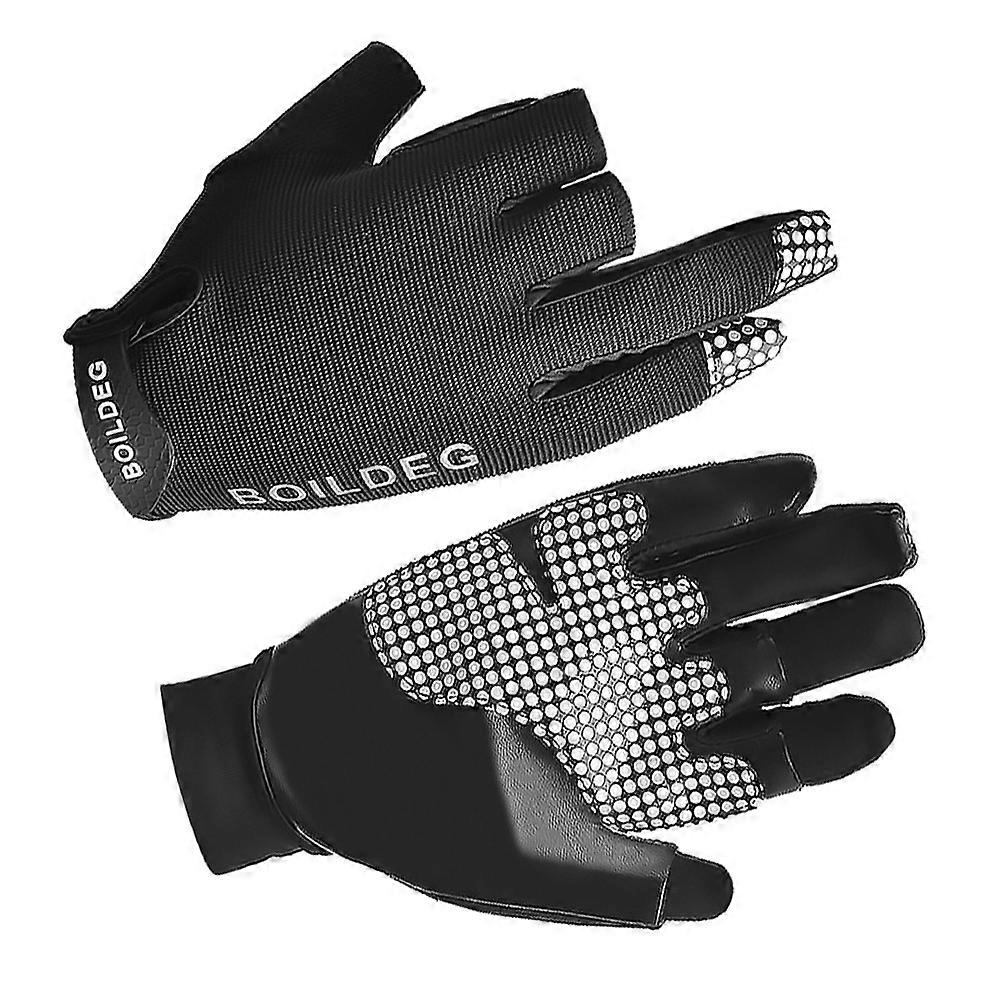 Reflective Outdoor Fishing Gloves 3 Pairs Anti Skid Gloves For Rowing Sailing Size L Black