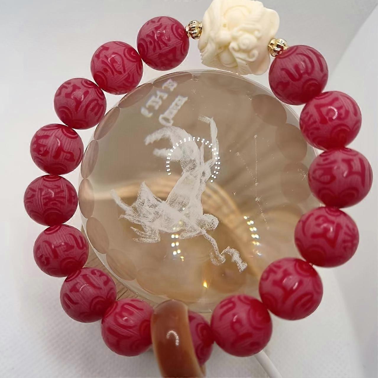 Bohemian Style 12mm Bodhi Wood Carved Lion Charm Bracelet, DIY Jewelry Accessory & Perfect Gift