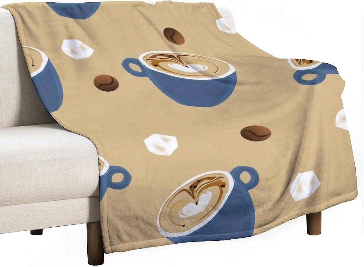 Throw Blanket - Coffee Themed Blanket Soft Flannel Throw for Bed and Couch (40"x50")