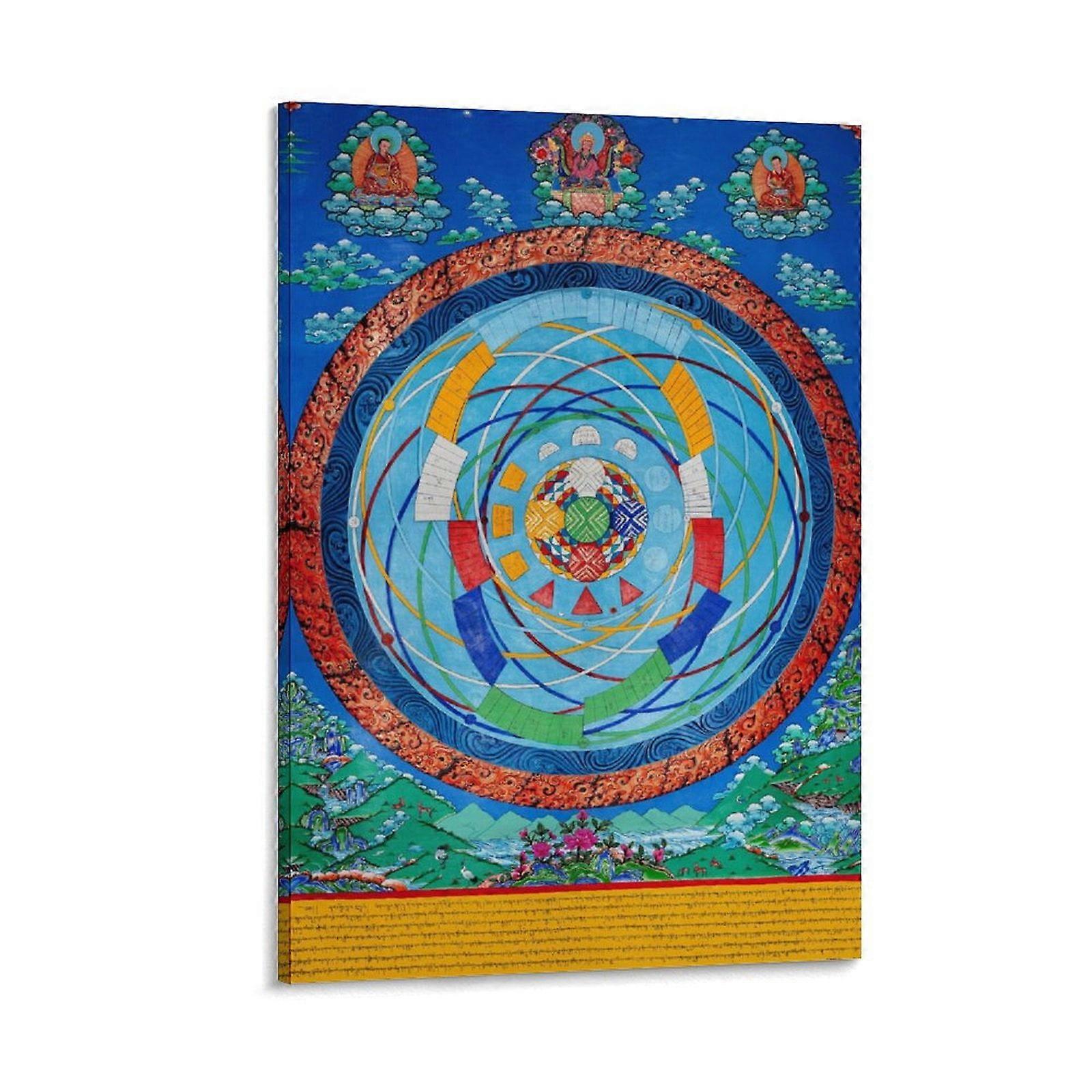 Celestial Body Thangka Art Print, Tibetan Altar City Canvas Poster, 12x18inch Home Decor Gift (30x45cm)