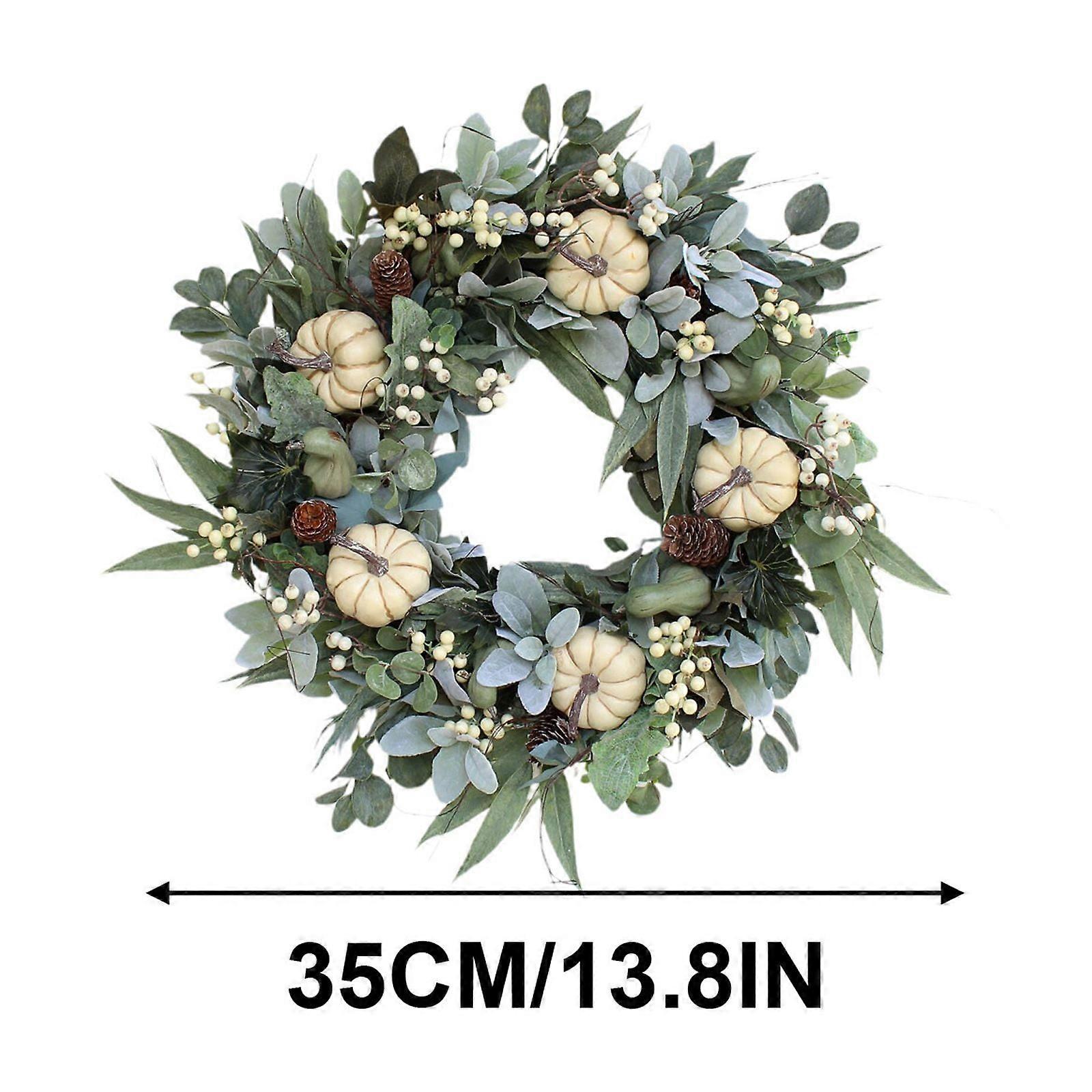 Fall White Pumpkin Wreath Home Decor Door Hanging Garland Holiday Ornaments 35