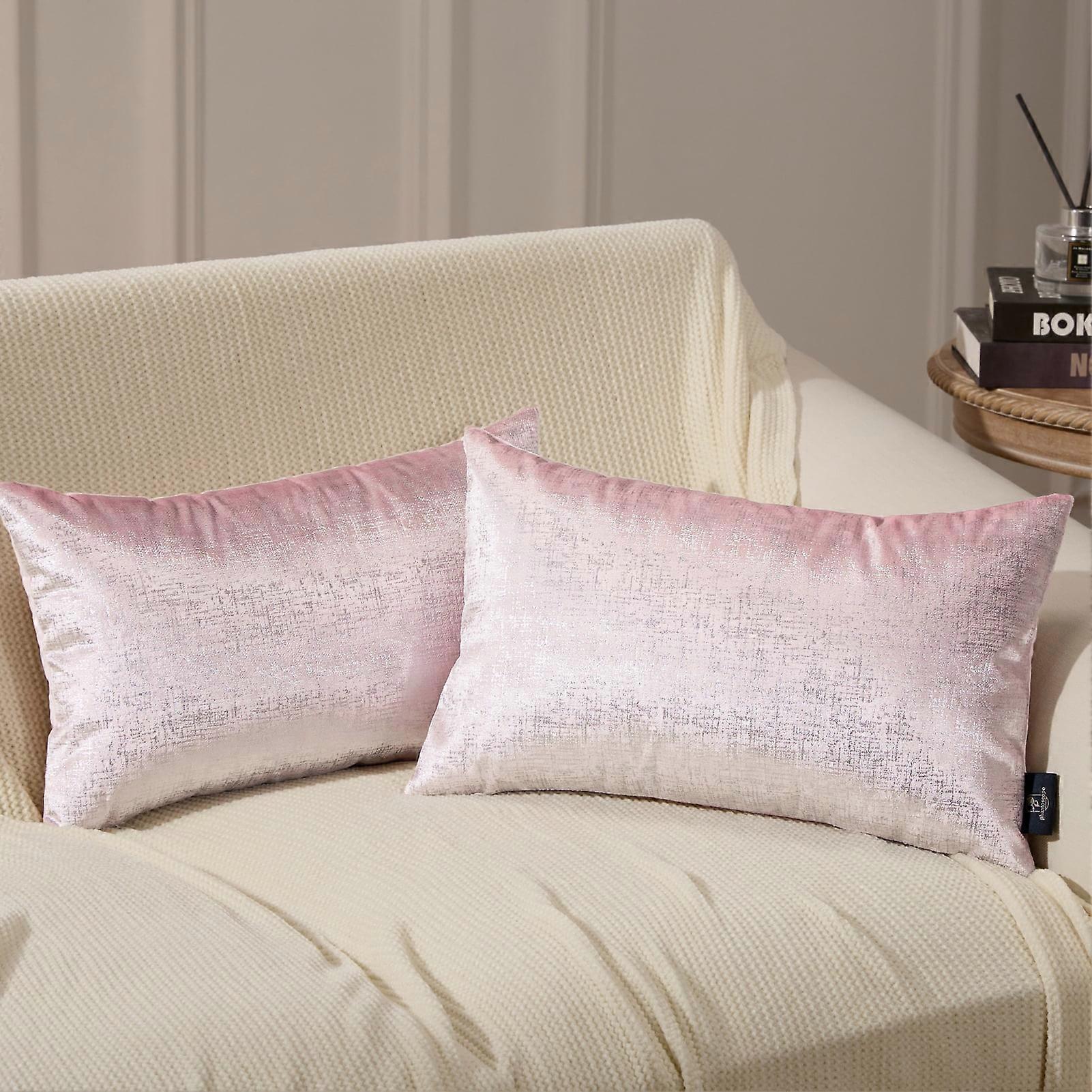 Phantoscope Bronzing Gold Foil Printed Cut Pile Velvet with Gilding Metallic Shiny Decorative Throw Pillow Covers, 12" x 20", Pink Silver, 2 Pack