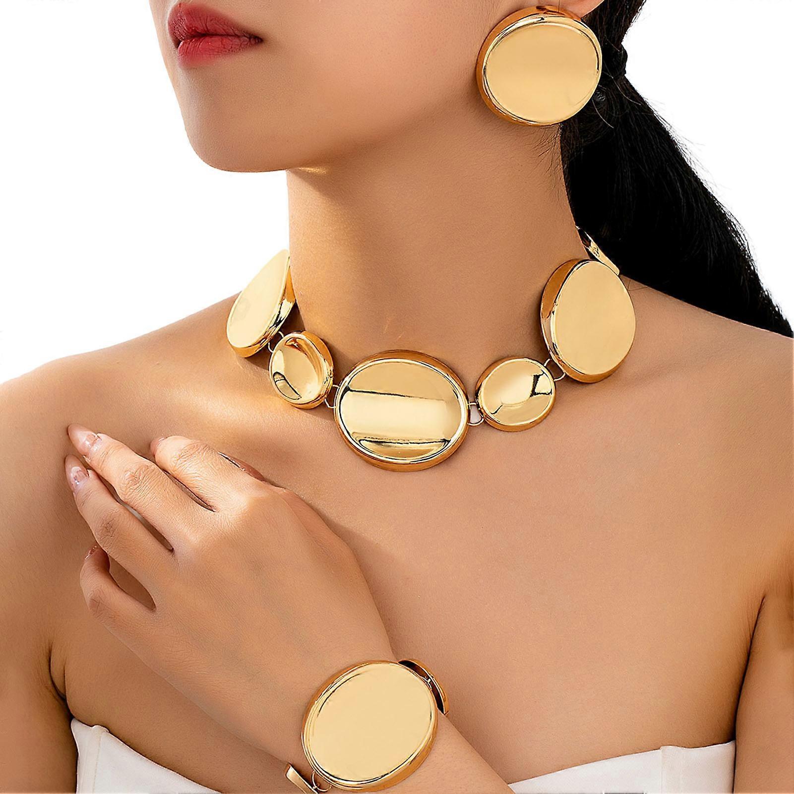 Irregular Geometric Alloy Jewelry Set For Women 3Pc Earrings Bracelet Necklace