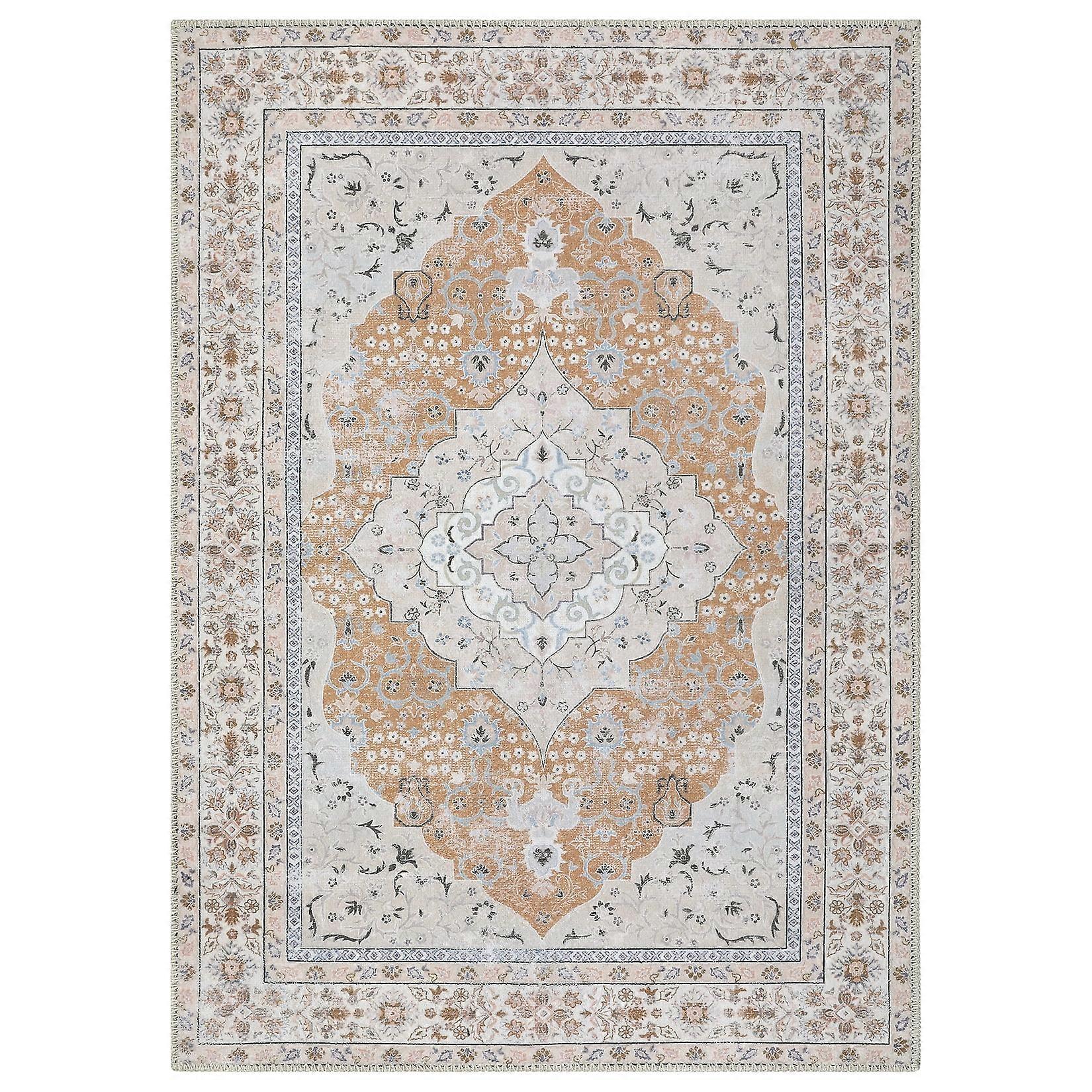 Haperlare Area Rug for Bedroom 5 x 7 Boho Accent Rug Machine Washable Rug Non-Slip Carpet for Living Room Bedroom Dining Room Kitchen, Orange/Beige