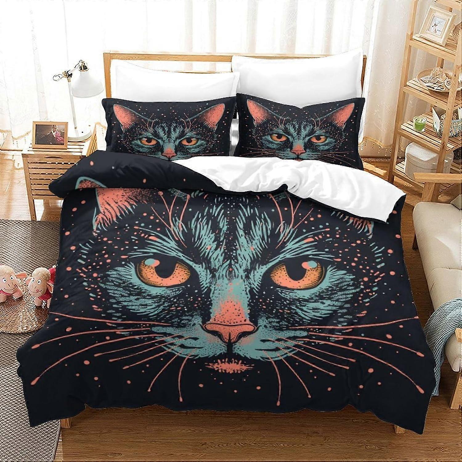 3D Printed Cat Duvet Cover Set - 3pc Microfiber with Pillowcases, Zipper Closure - Compatible with Kids & Adult Beds