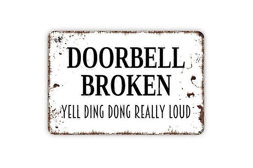 (Aluminum metal) Doorbell Broken Yell Ding Dong Really Loud Sign Funny Metal Sign Farmhouse Contemporary Modern Wall Metal Sign Size: 16 x 12 Inch
