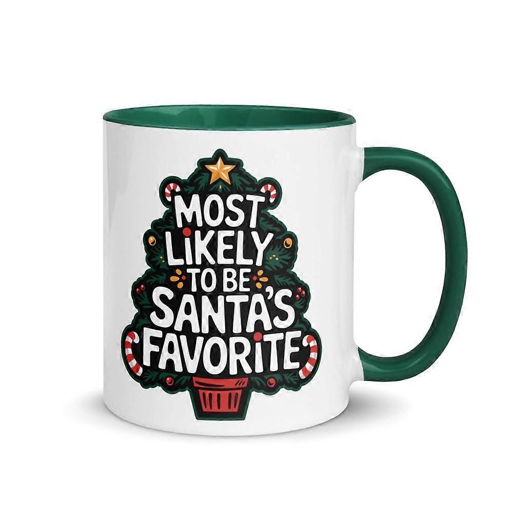 Family Matching Xmas Mug with Color Inside, Most Likely To Be Santa's Favorite - Christmas Present (Dark Green, 11 oz)