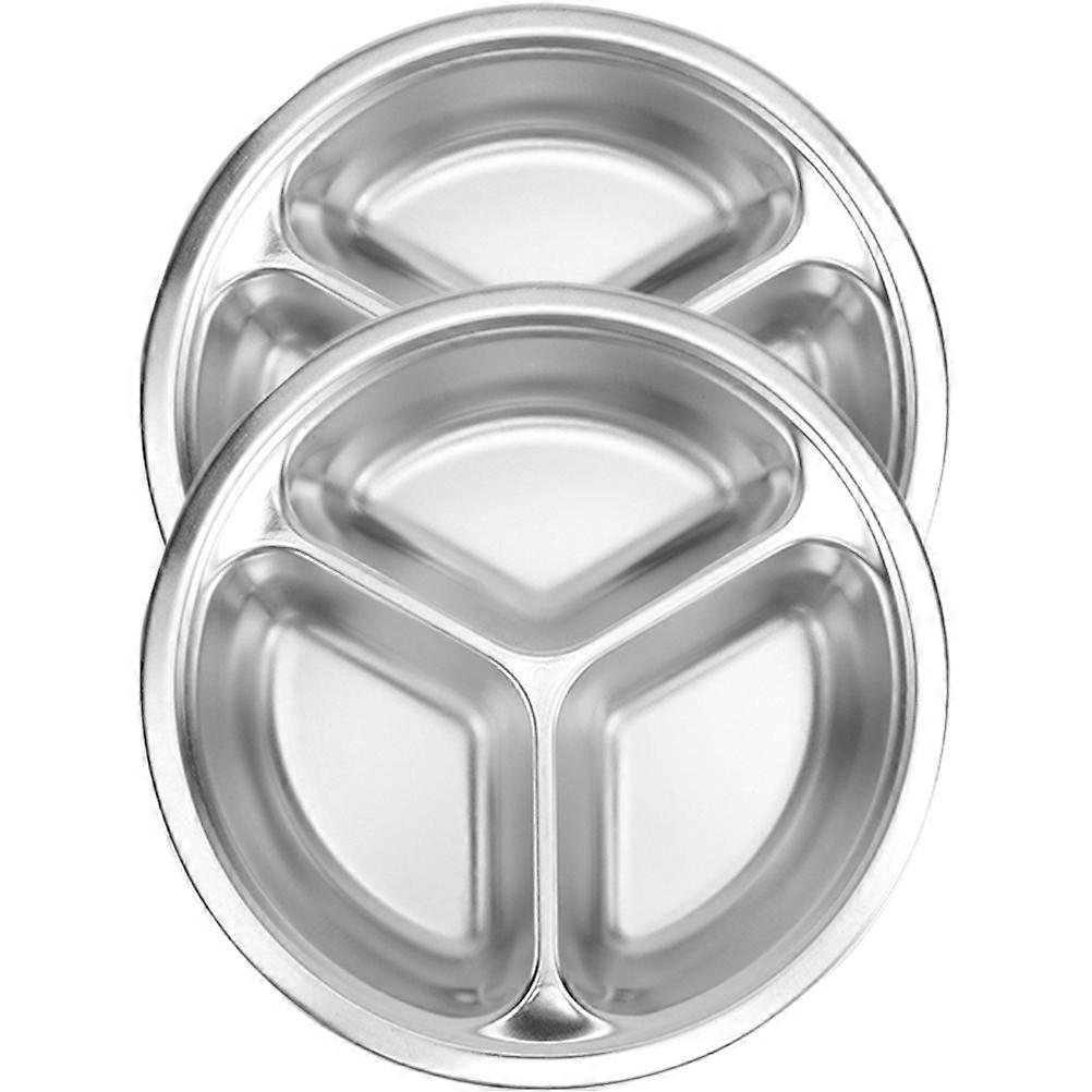 Silver Stainless Steel Plates Deepen Divided Plate for Home 2Pcs Cafeteria Tray