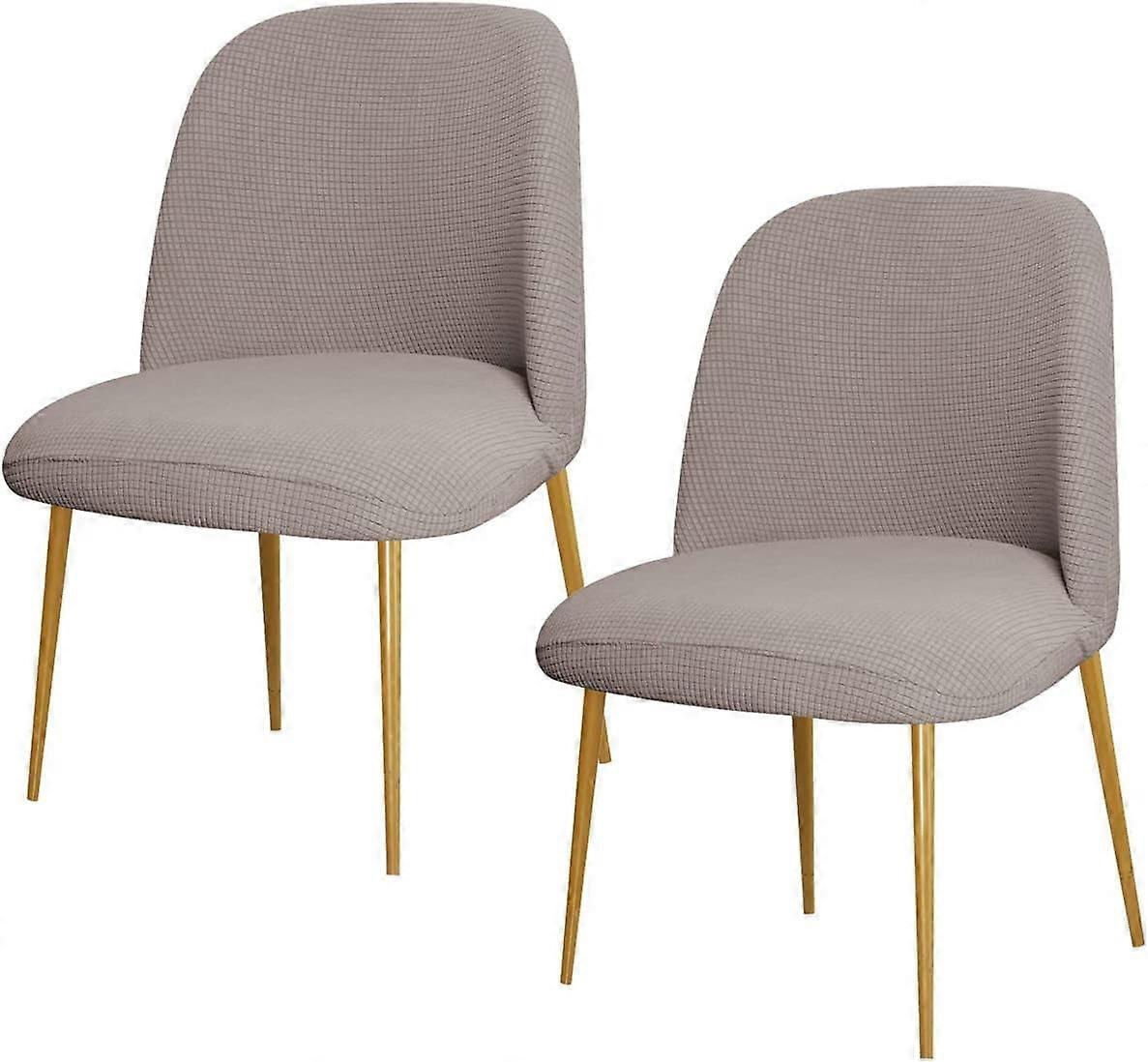 DEFNES 2 Pcs Soft Stretch Dining Chair Covers, Polyester Slipcovers for Armless Curved Back Chairs, Kitchen & Living Room Protector (Tan)