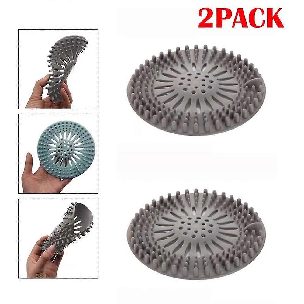 2Pack Hair Catcher Durable Silicone Hair Stopper Shower Drain Covers-Grey